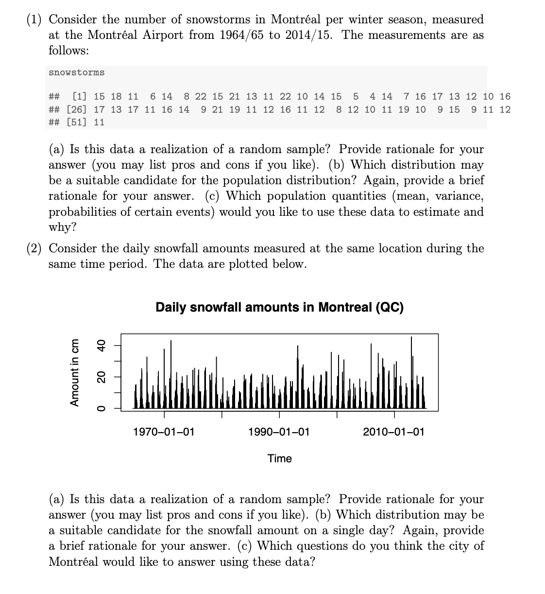 (1) Consider the number of snowstorms in Montréal per winter seaso...