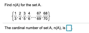 Find n(A) for the set A. 1234 67 68 3'4'5'6''166'70 ...., The c...