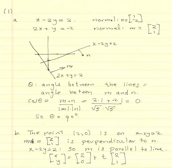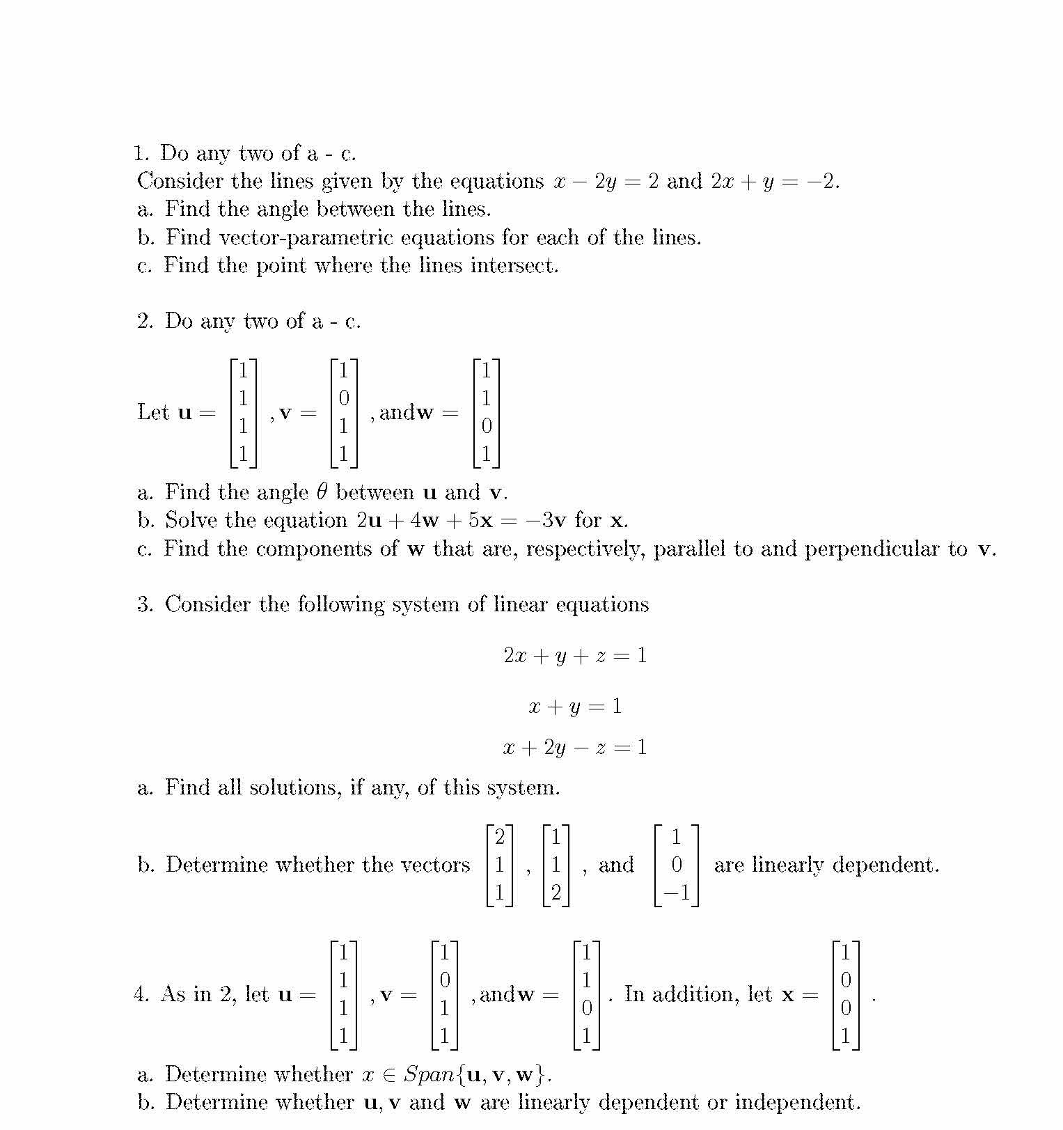 1. Do any two of a - c. Consider the lines given by the equations ...