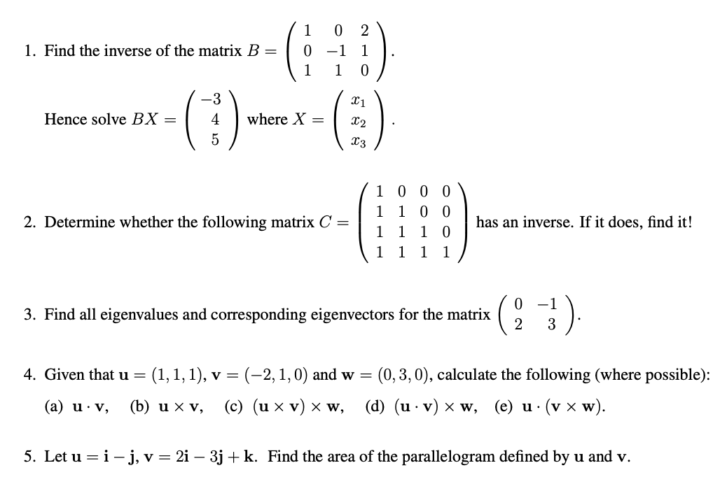 1. Find the inverse of the matrix 102 Hence solve ** 5 where x-(i)...