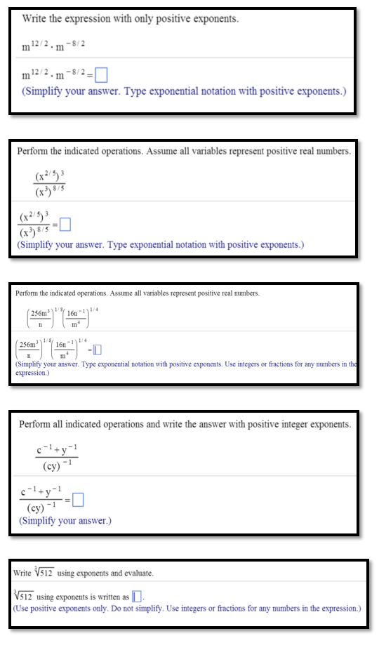 Write the expression with only positive exponents m 12/2.m-8/2 =...