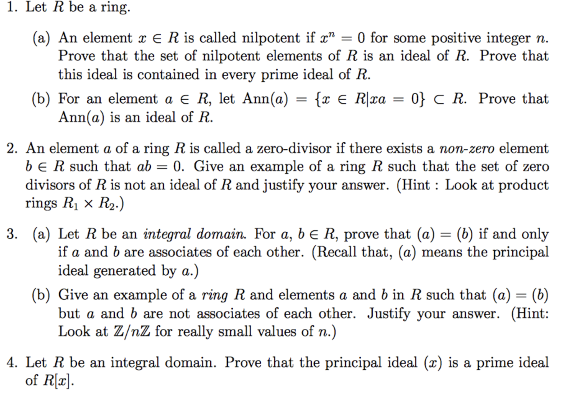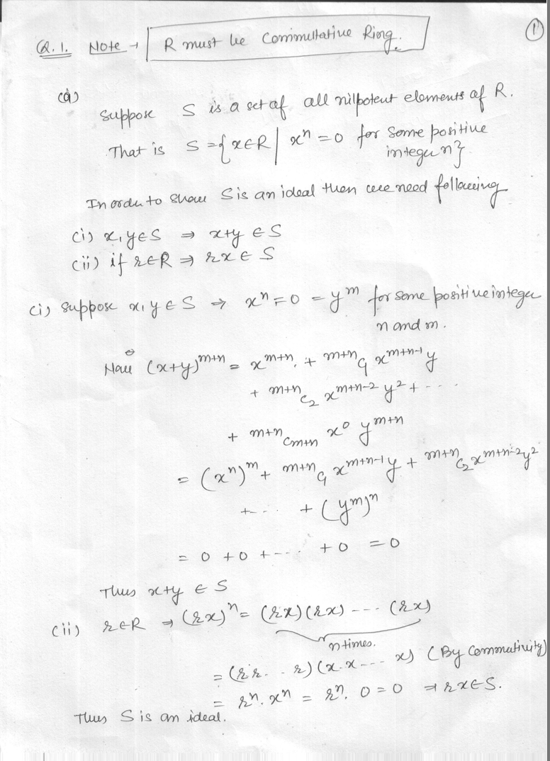 1. Let R be a ring. (a) An element x E R is called nilpotent if xn...