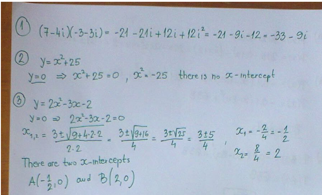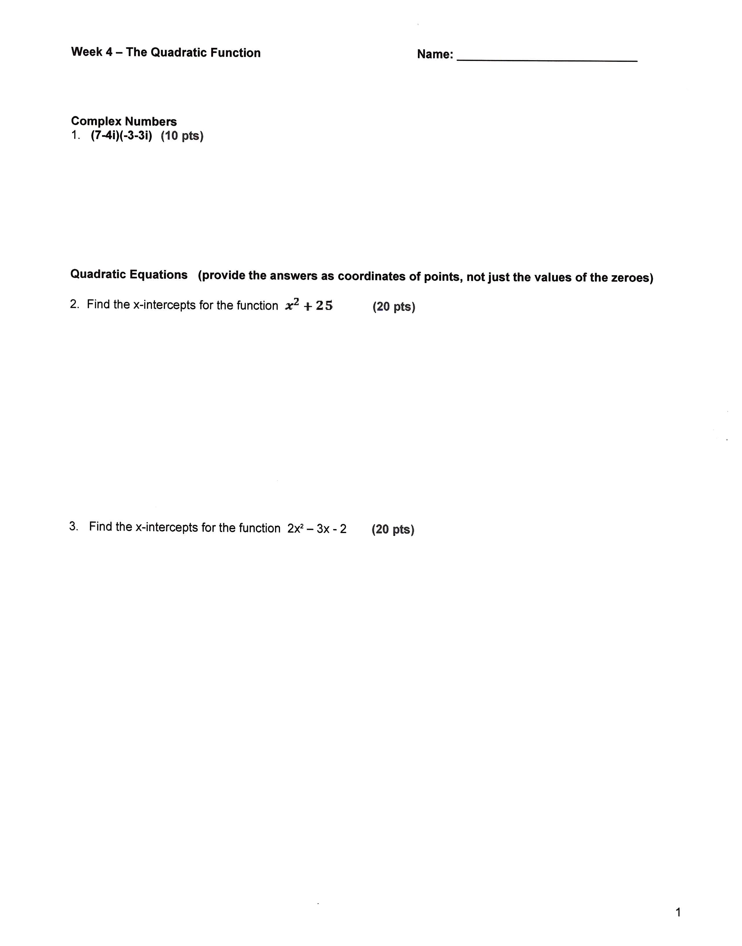 Week The Quadratic Function Name Complex Numbers 1. (7-4i)(-3-31...