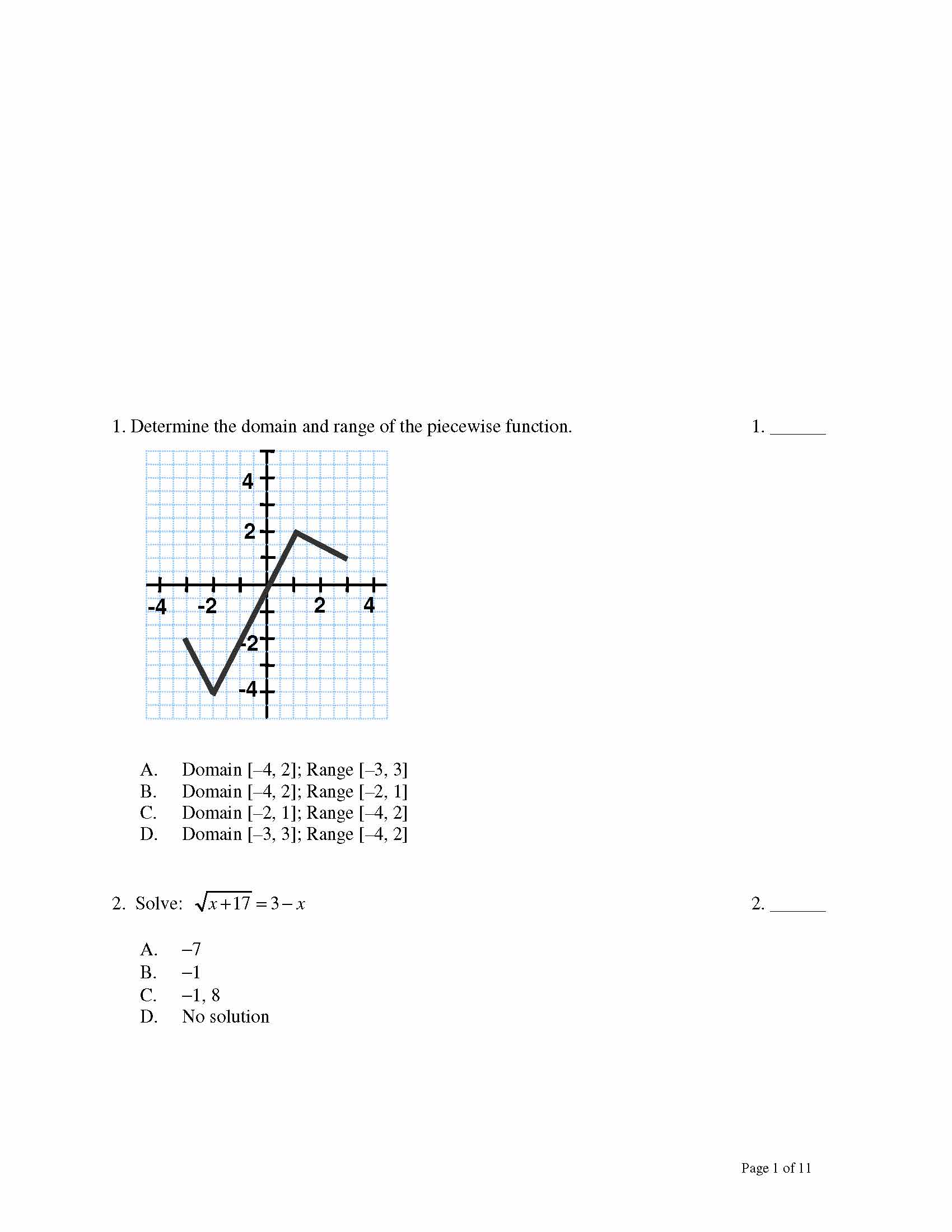 1. Determine the domain and range of the piecewise function. 1. 4...