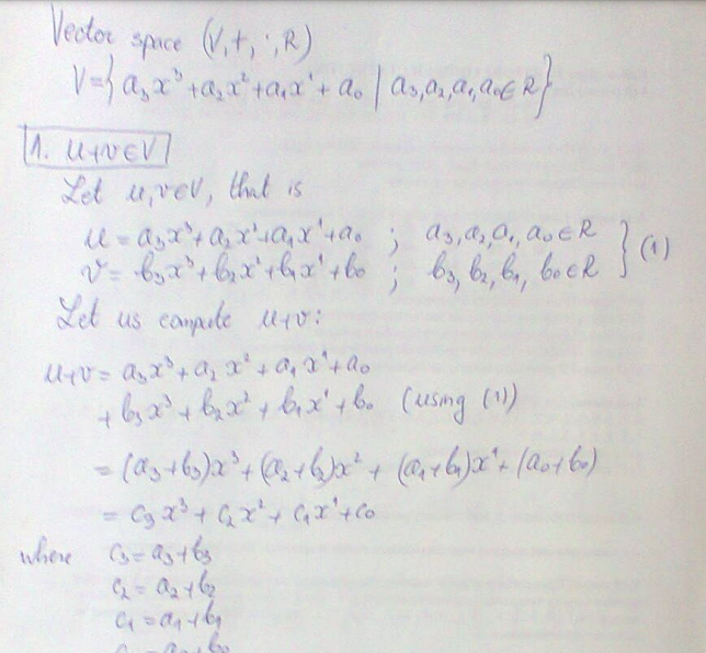 (Verifying that degree at most 3 polynomials form a vector space. )...