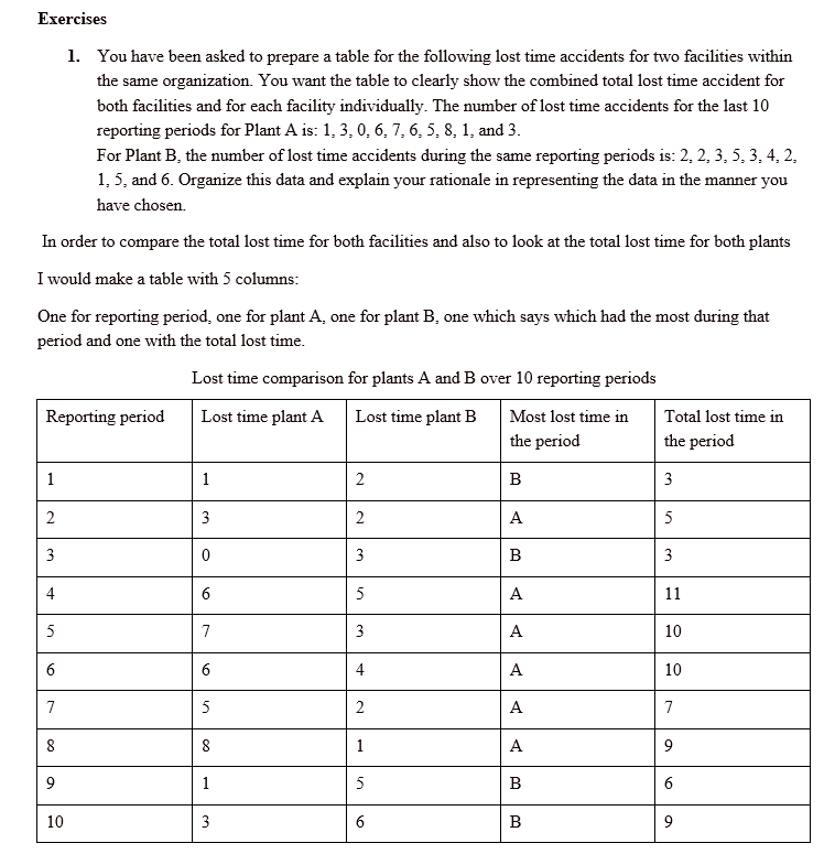 1. You have been asked to prepare a table for the following lost ti...