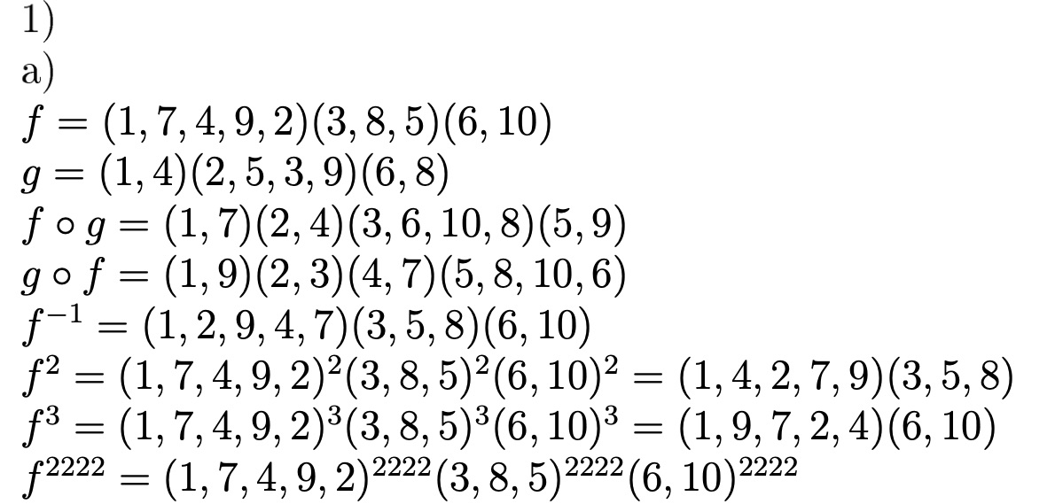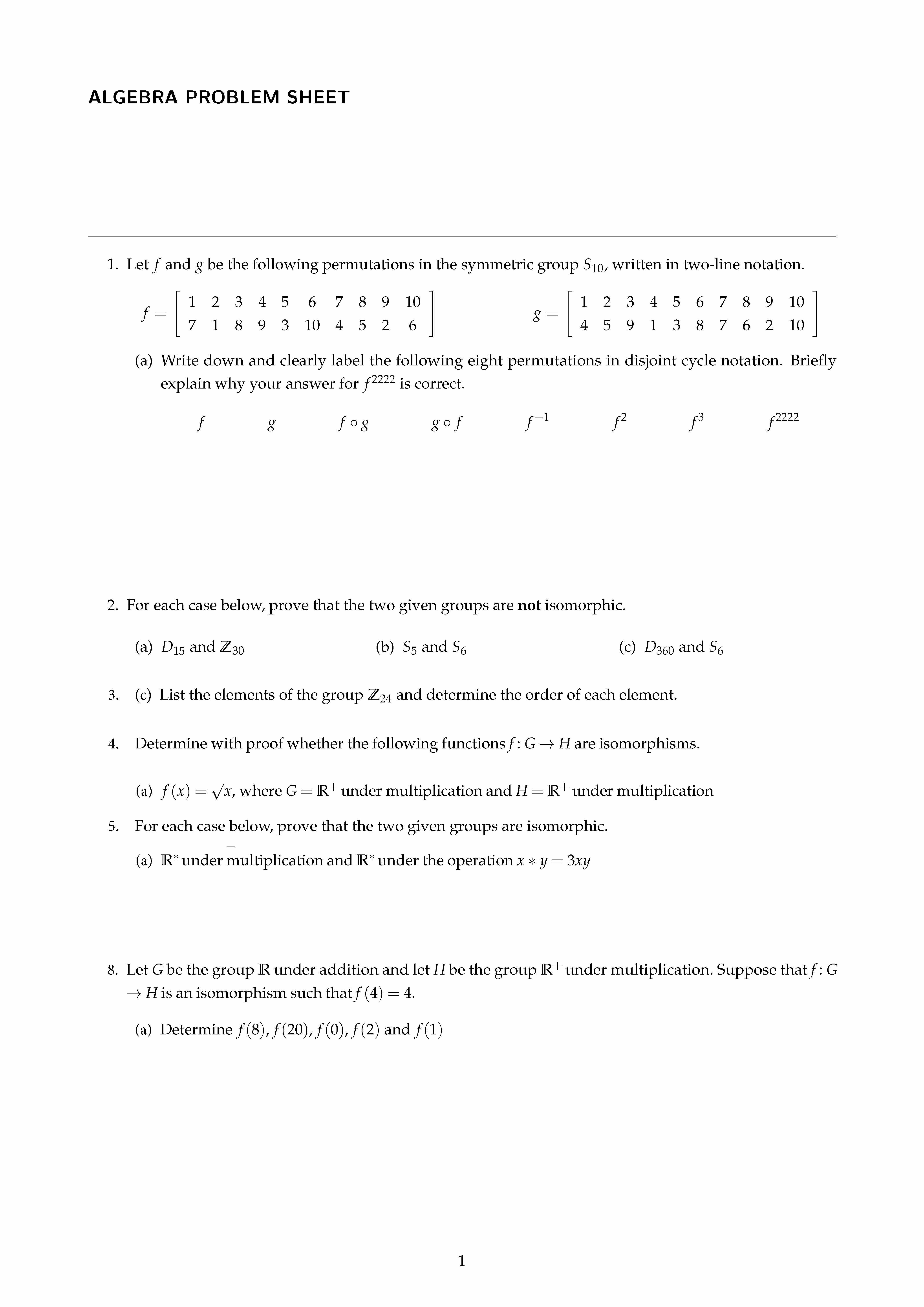 ALGEBRA PROBLEM SHEET 1. Let f and g be the following permutation...