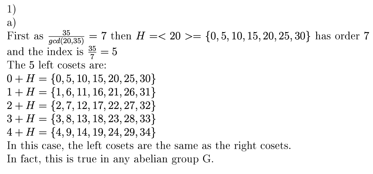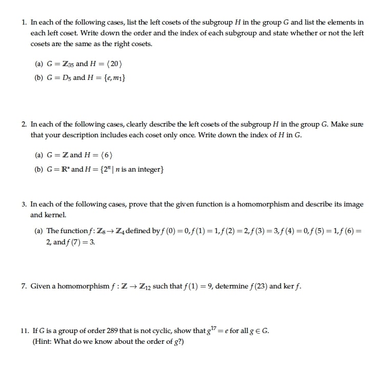 1. In each of the following cases, list the left cosets of the subg...