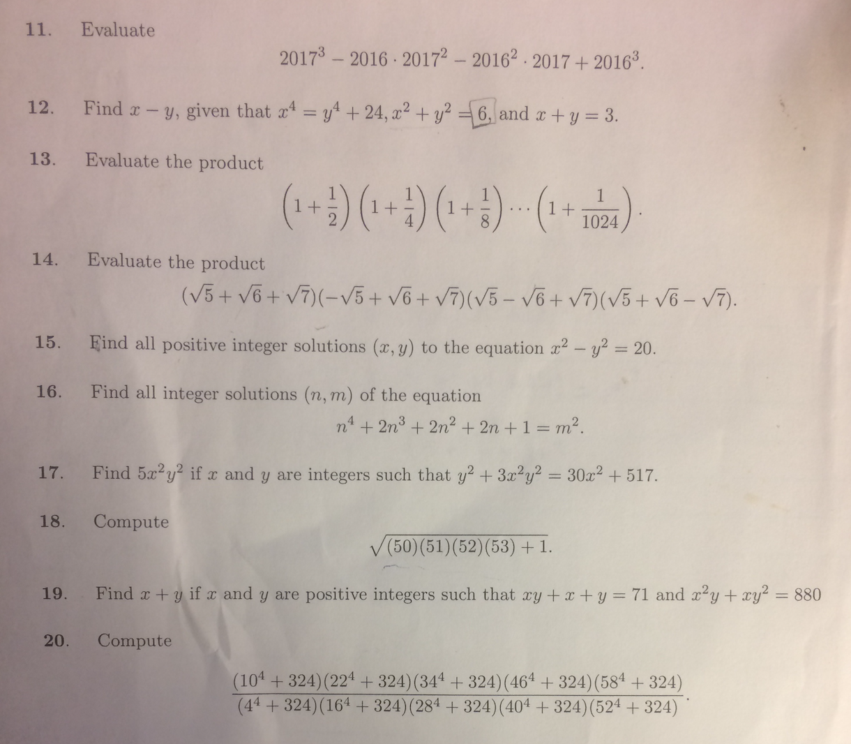 11. Evaluate 2017³ 3-2016. 20172-20162.2017 + - - 2016³. 12. F...
