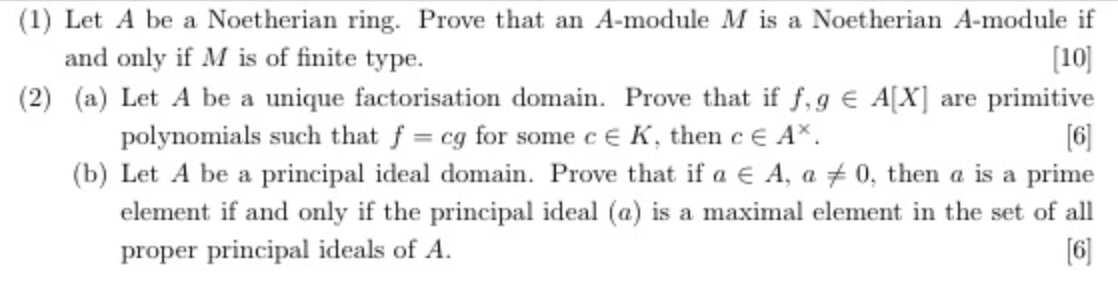 (1) Let A be a Noetherian ring. Prove that an A-module M is a Noeth...