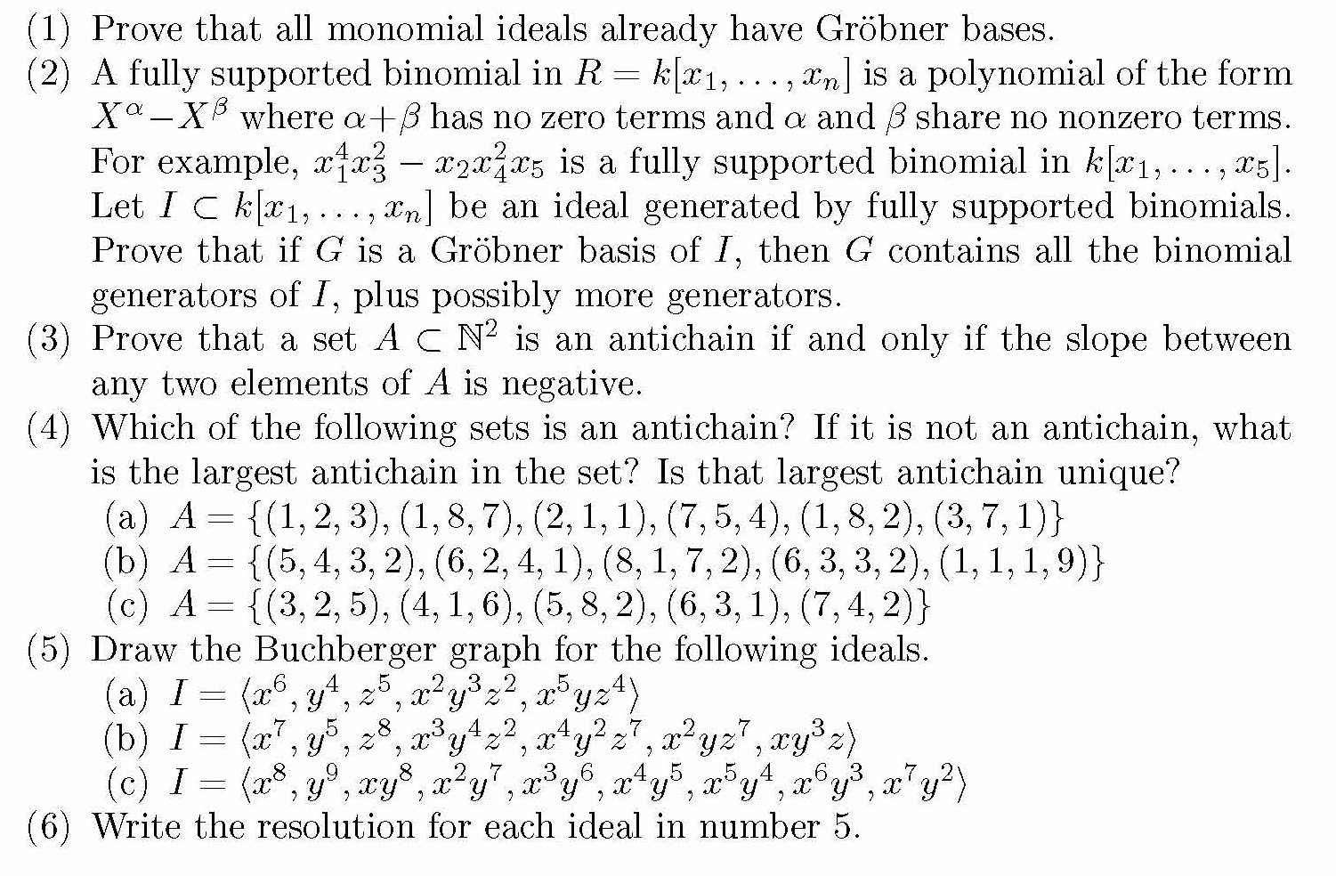 (1) Prove that all monomial idenls alrendy have Gröbner bnses. ...