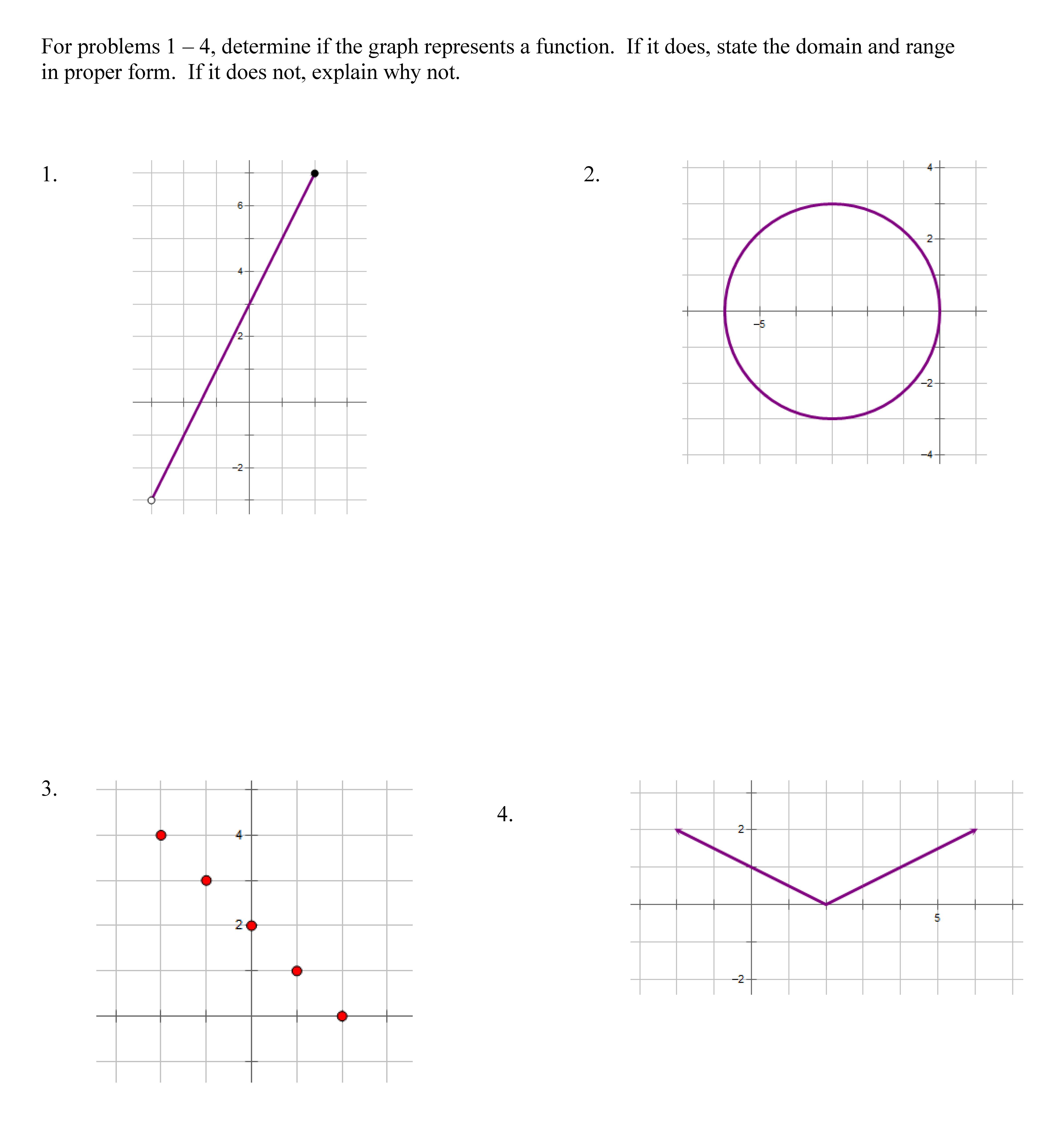 For problems 1- 4. determine if the graph represents function. If i...