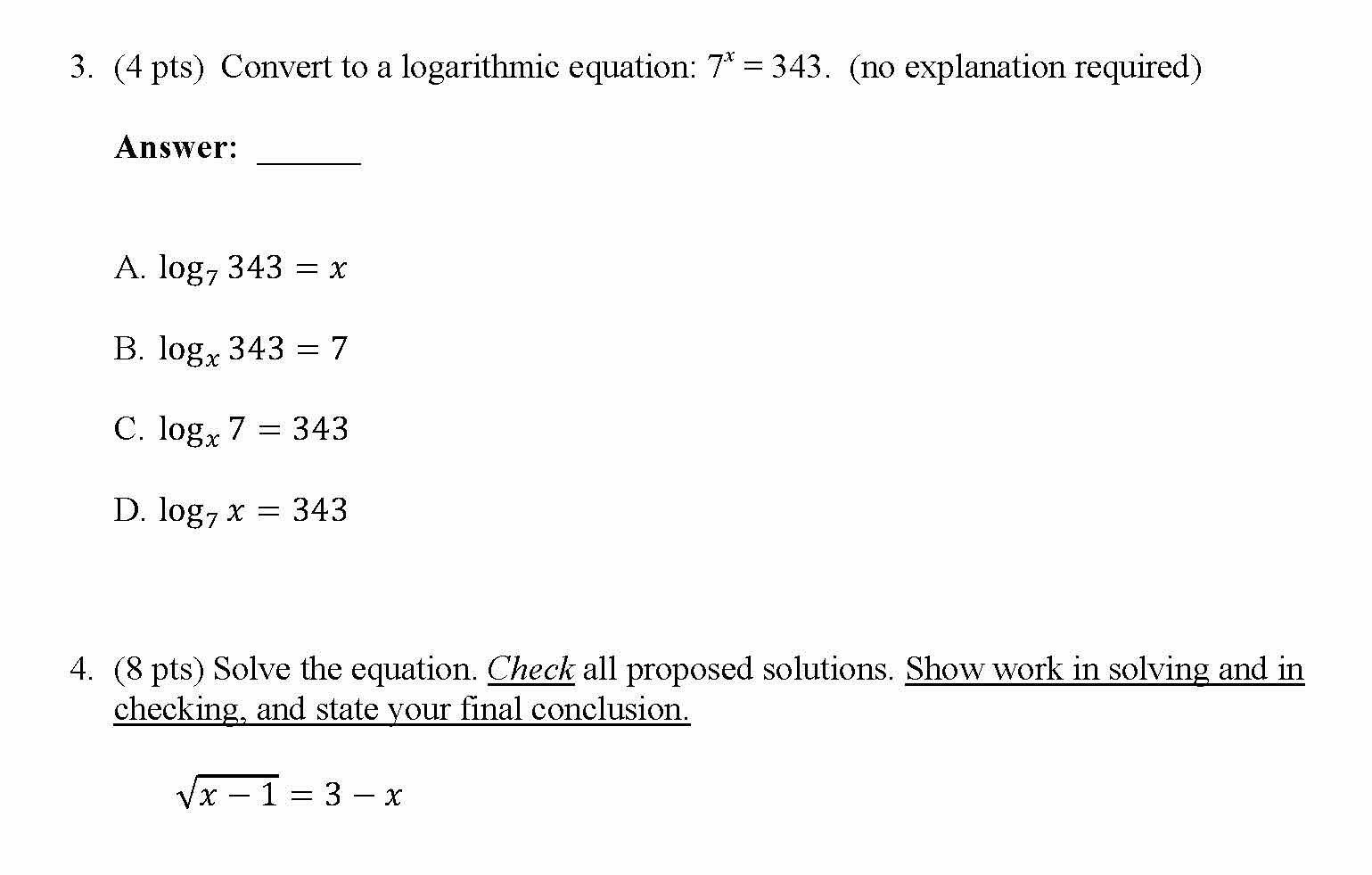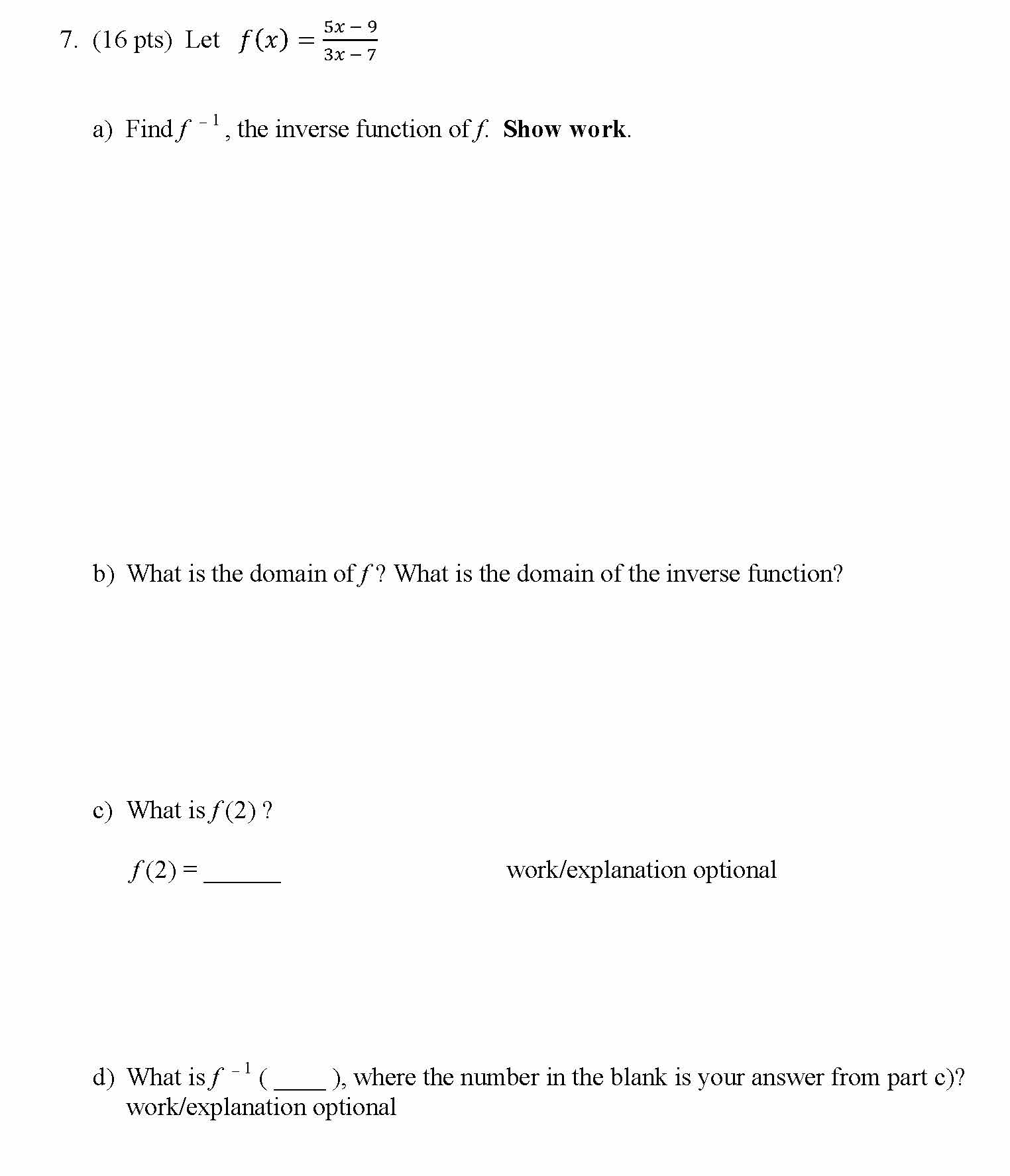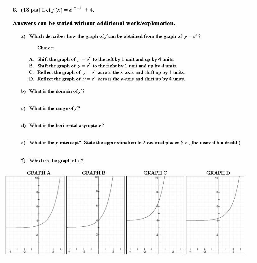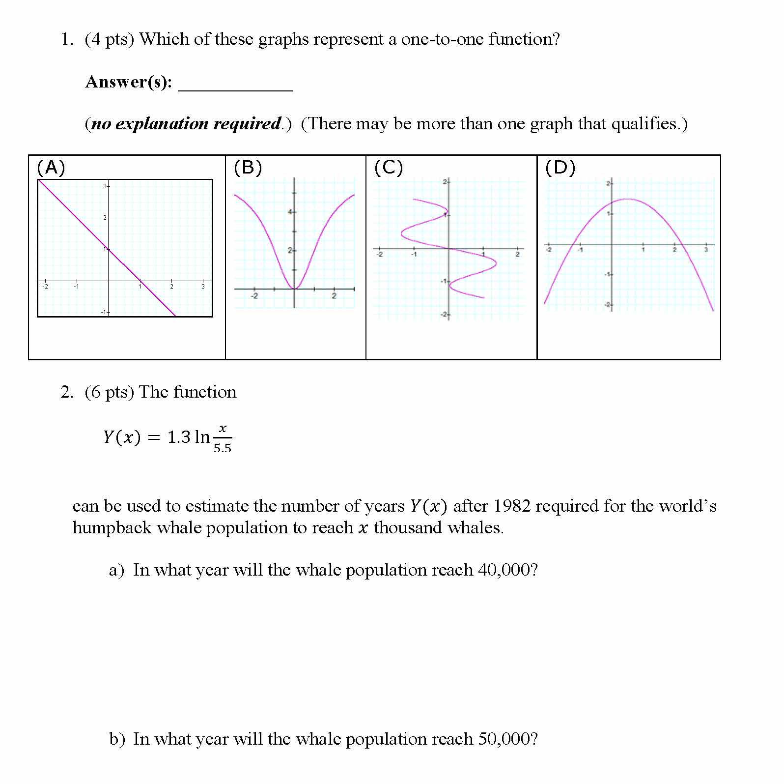1. (4 pts) Which of these graphs represent a one-to-one function? ...