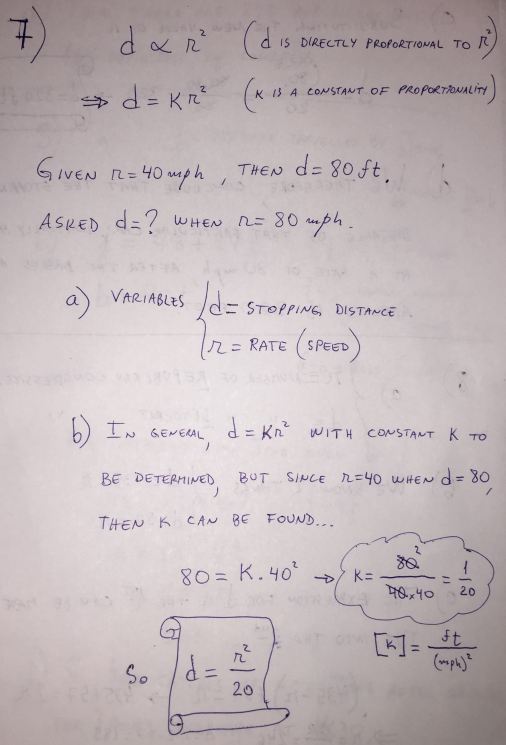 Solve the following problems: 7) The stopping distance, d, of a...