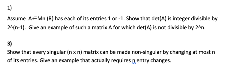 1) Assume AEMn (R) has each of its entries 1 or - -1. Show that de...