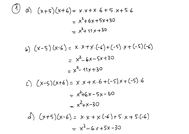 1. Find the quadratic product of each of the following a) (x + 5)...