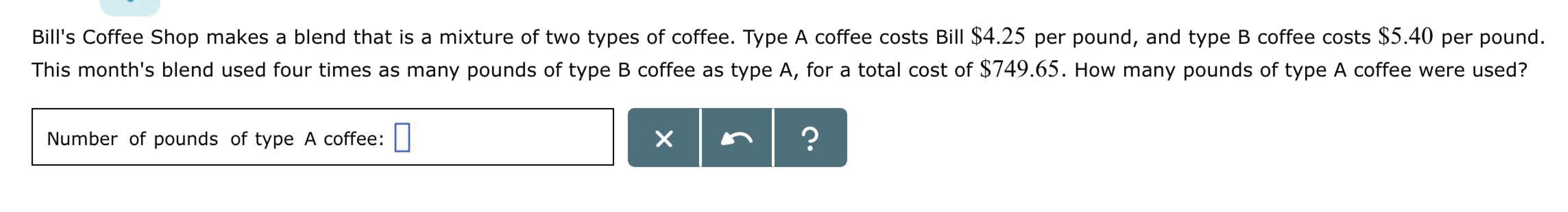 Bill's Coffee Shop makes a blend that is a mixture of two types of...