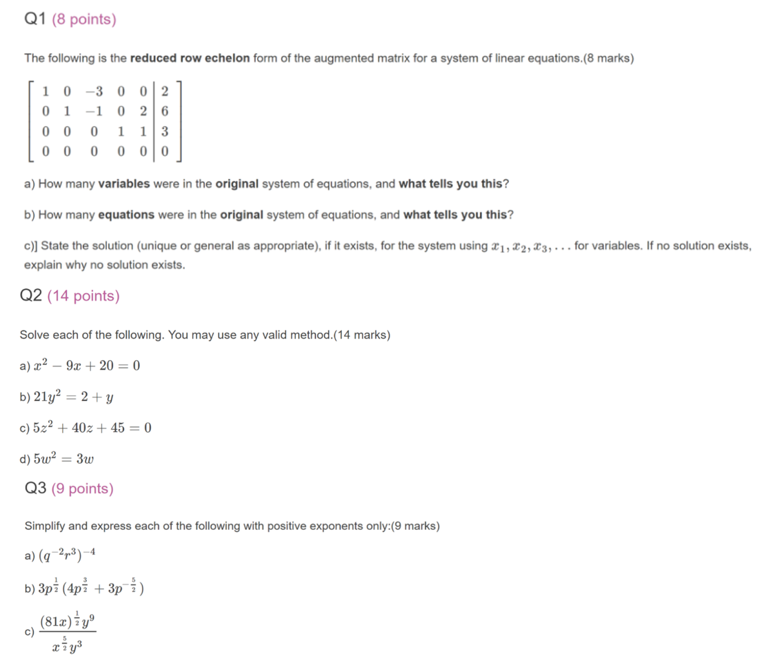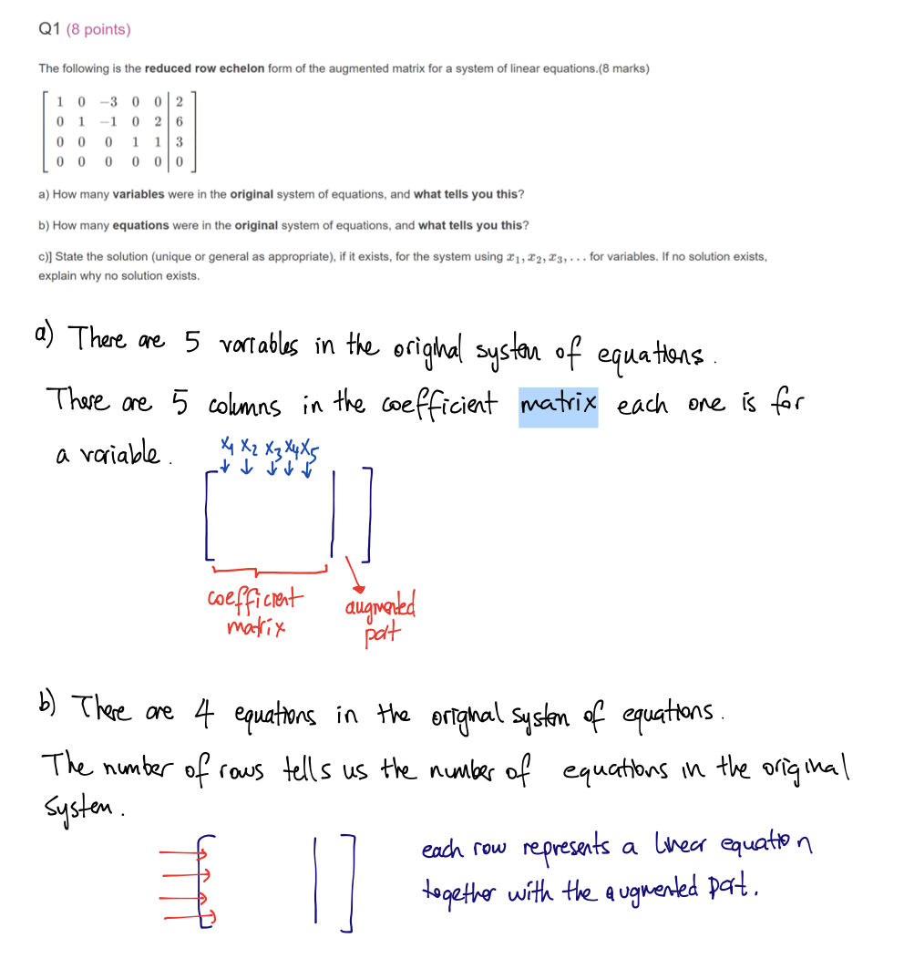 Q1 (8 points) The following is the reduced row echelon form of the...