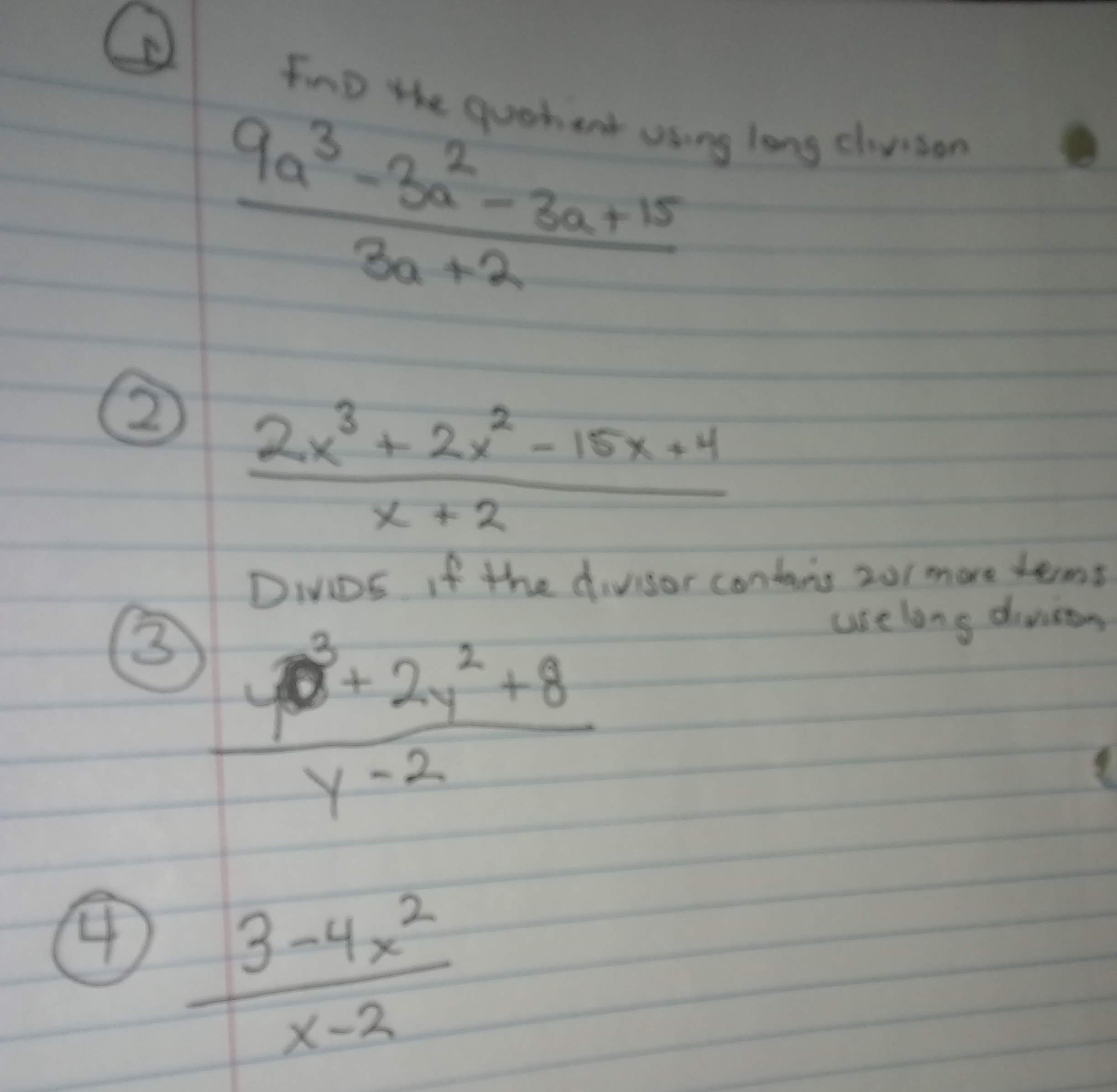 FAD the quatiest using long clivison 9a3 - 3a2 2 - 3a+15 30+2 2...