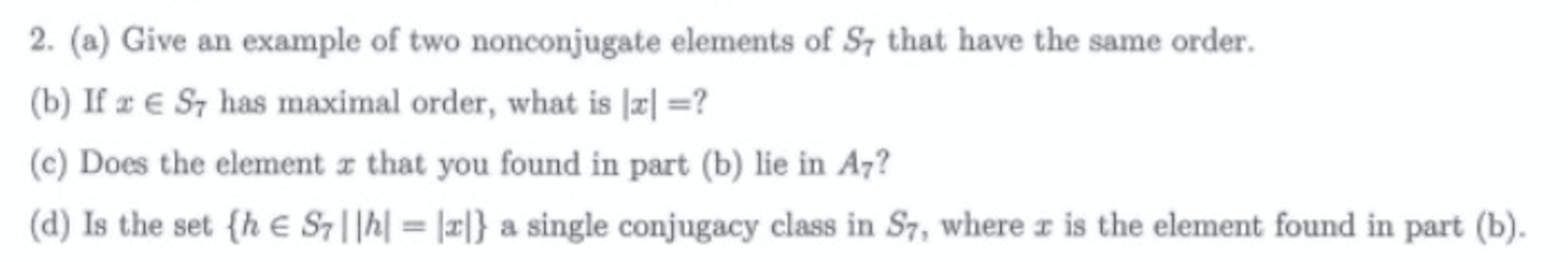 2. (a) Give an example of two nonconjugate elements of S7 that have...
