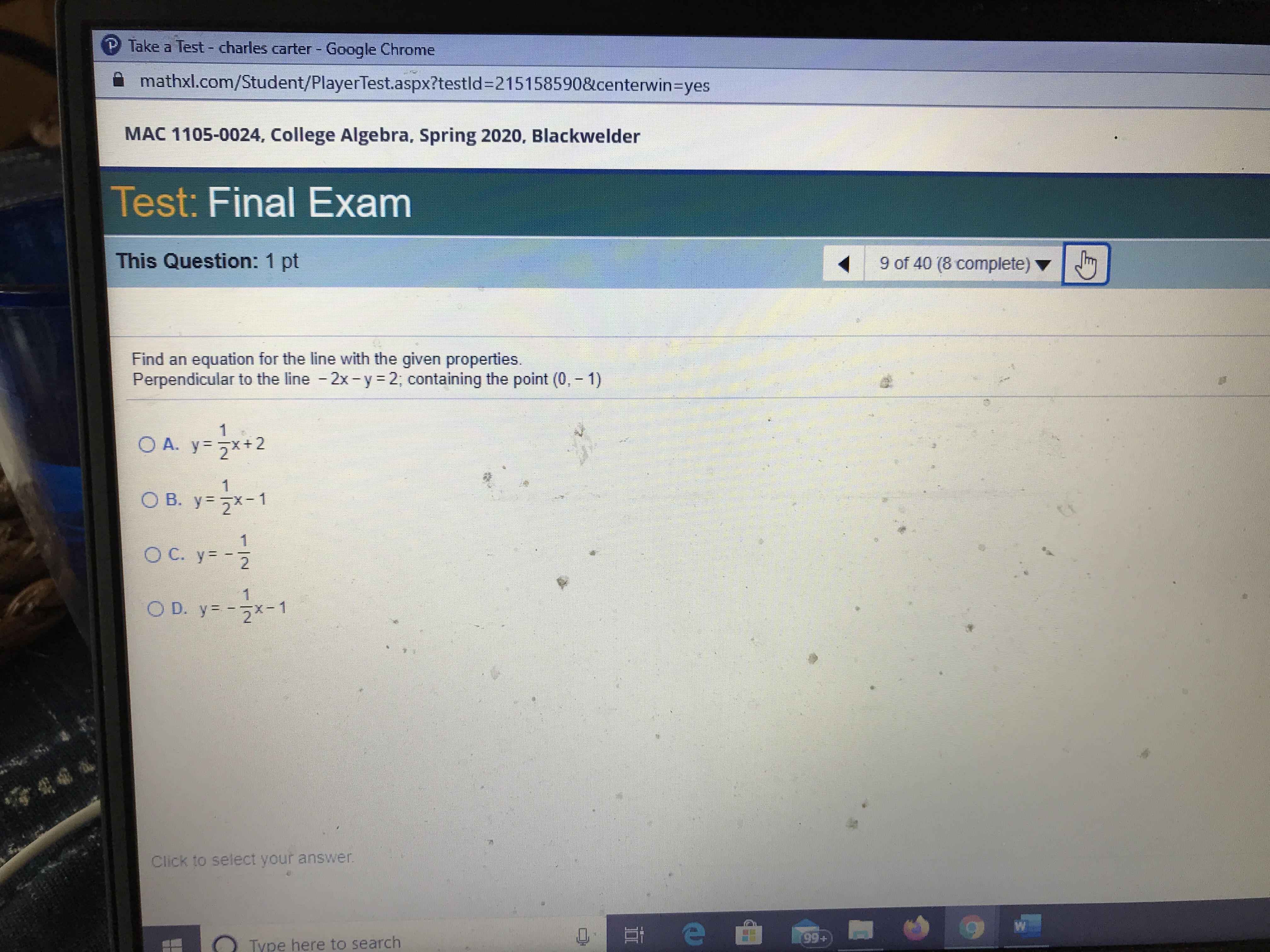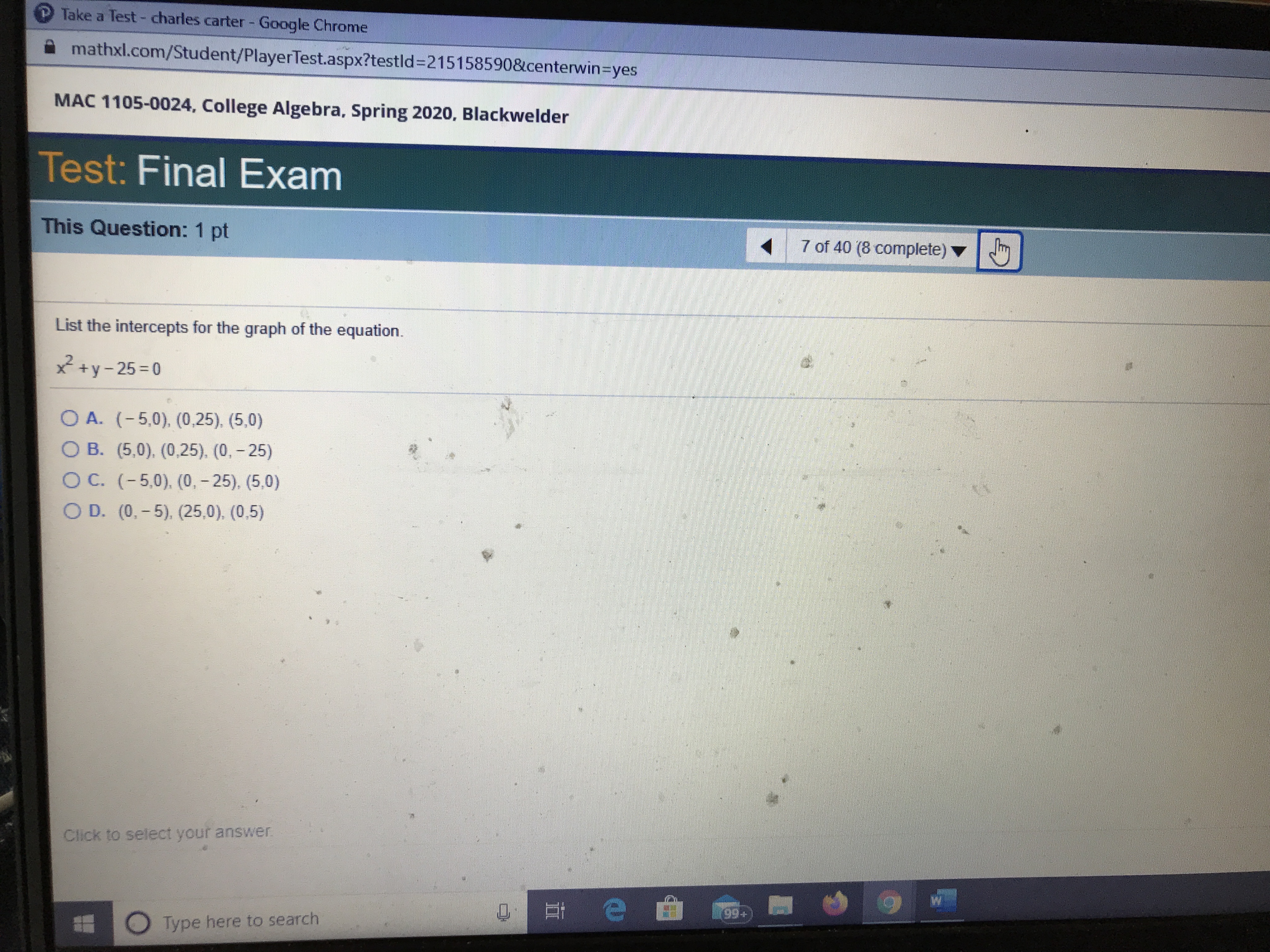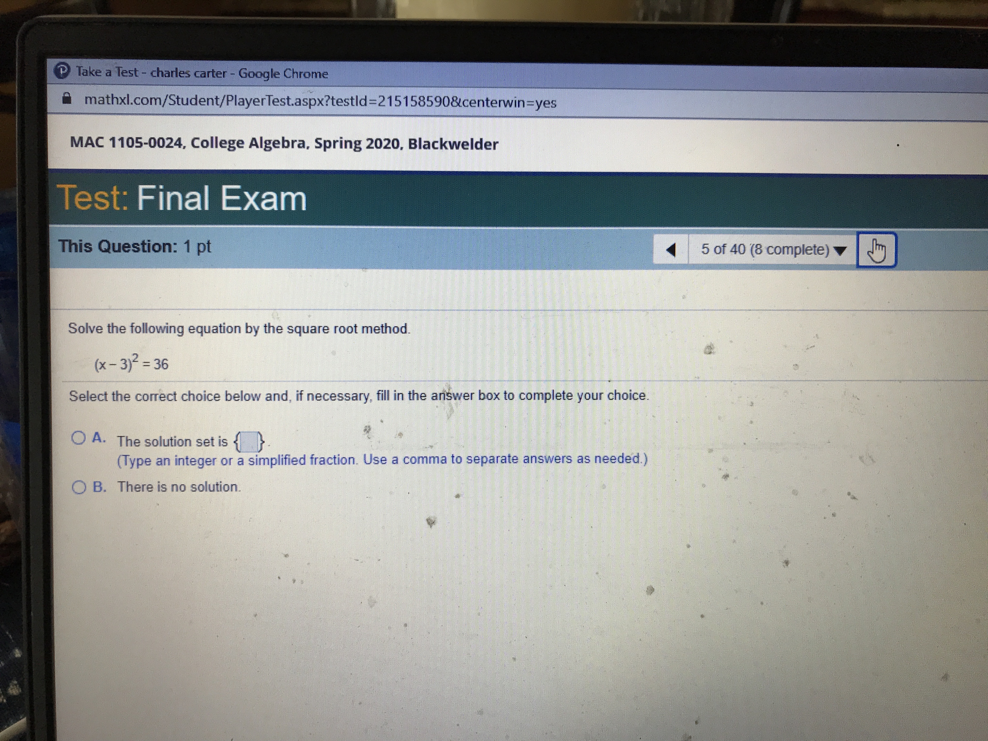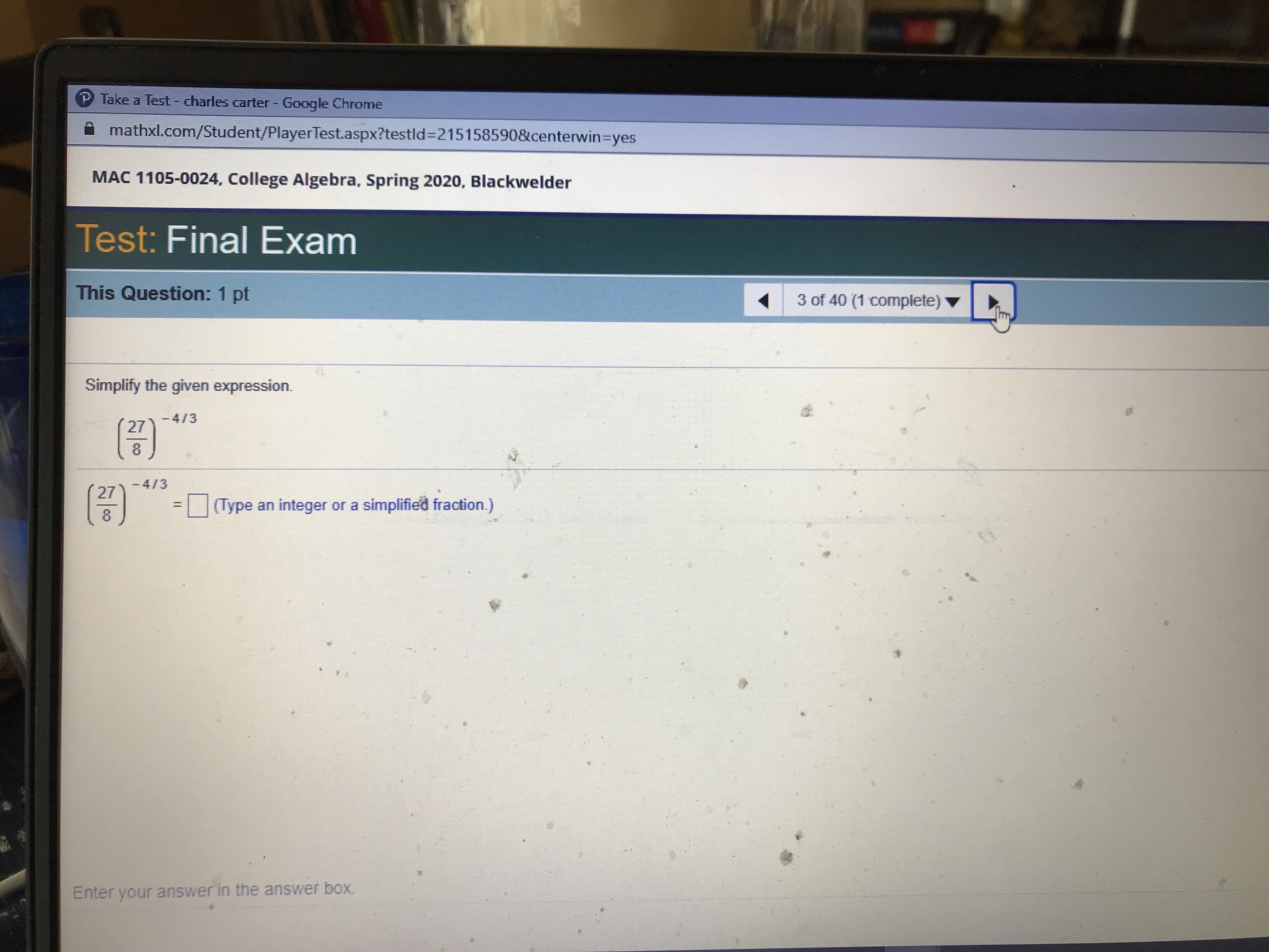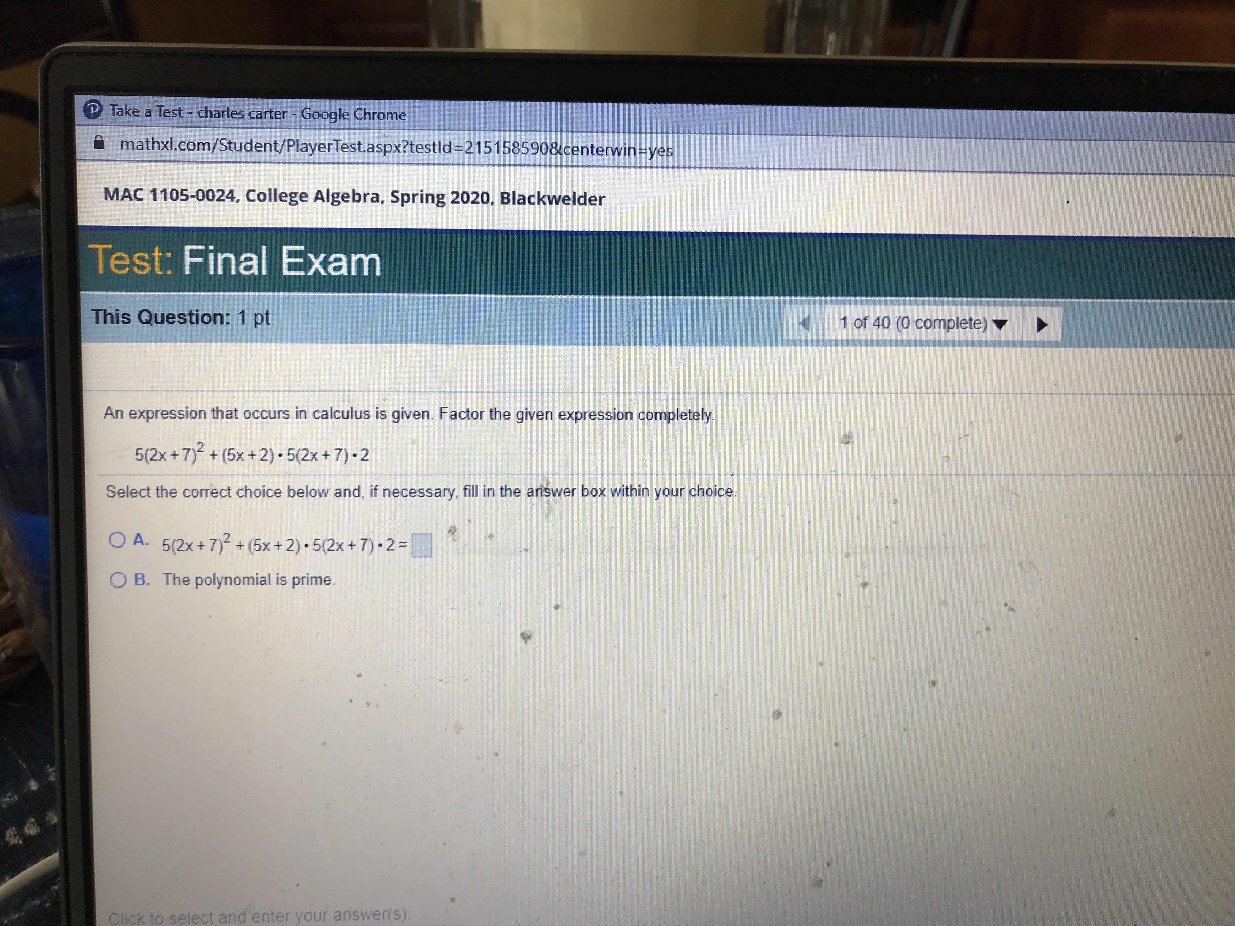 P Take a Test - charles carter - Google Chrome mathxl.com/Student...