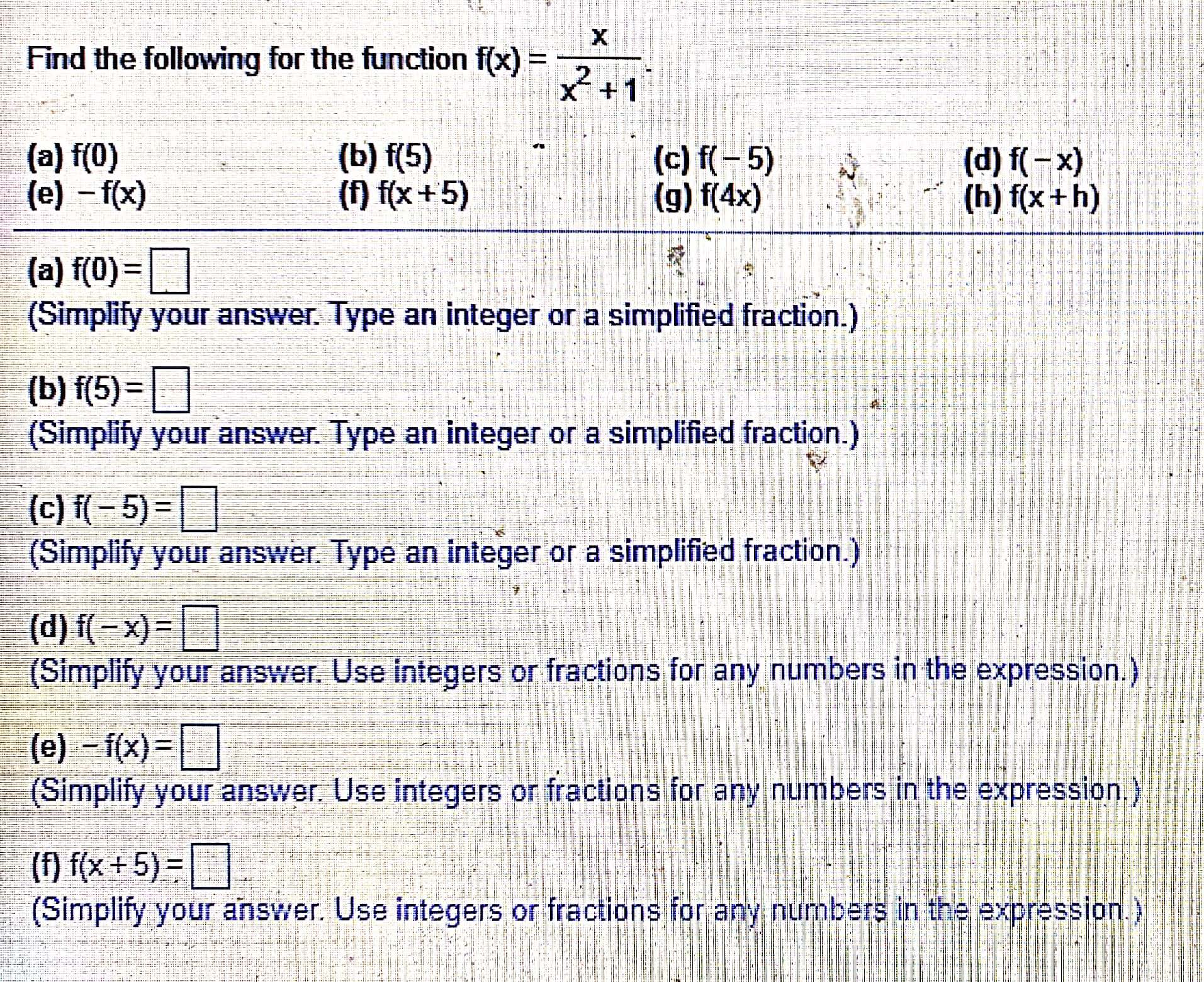 x Find the following for the function f(x) = 2 x1+1 (a) f(0) (...