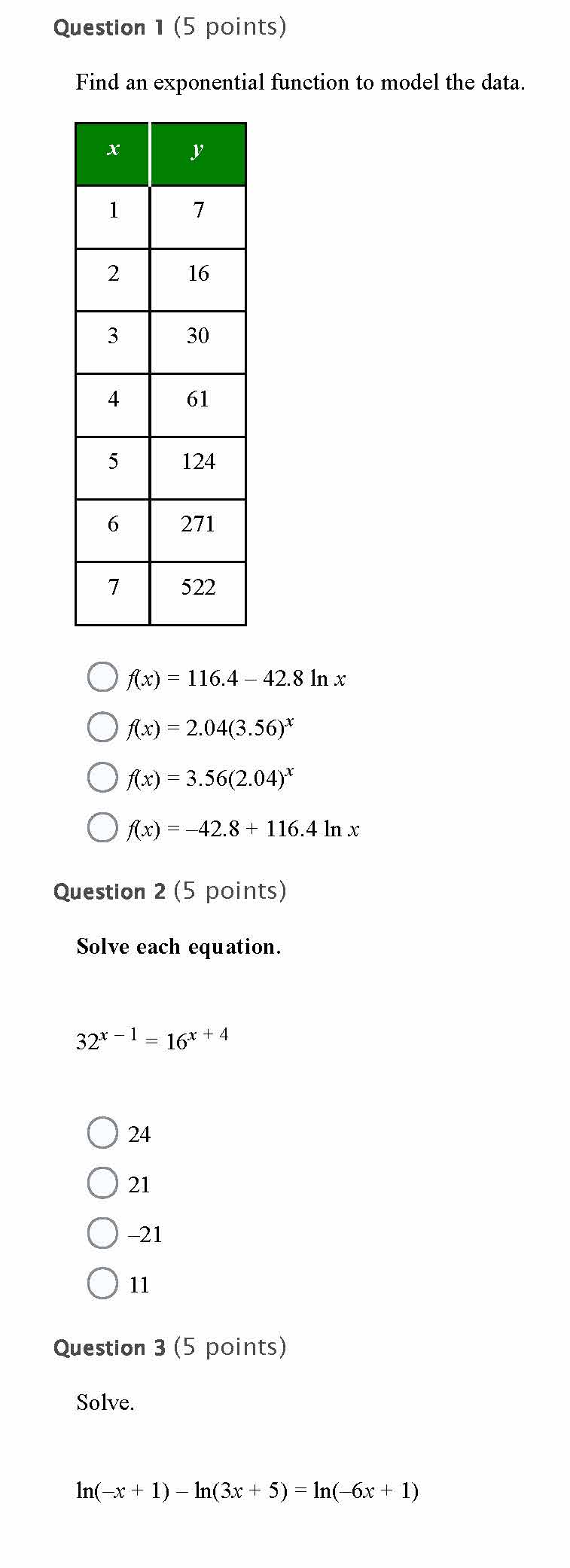 Question 1 (5 points) Question 2 (5 points) Question 3 (5 points)...