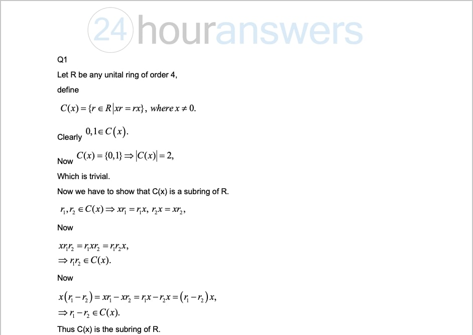 Question 1: Show that every unital ring of order 4 (i.e. having a...