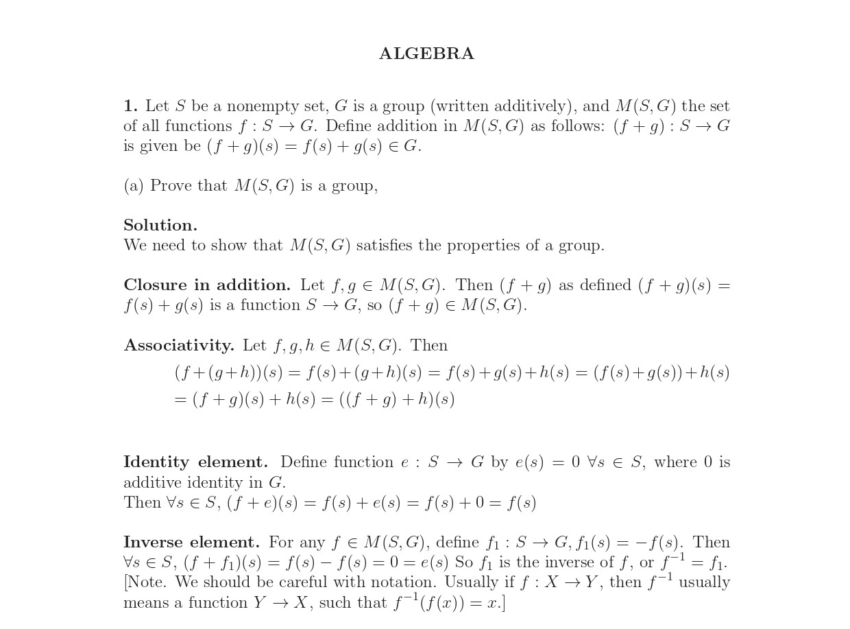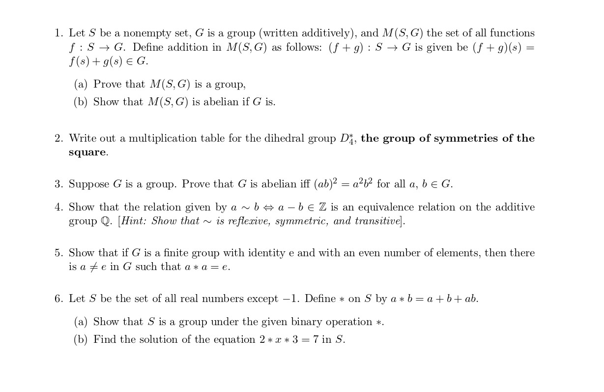 1. Let S be a nonempty set, G is a group (written additively), and ...