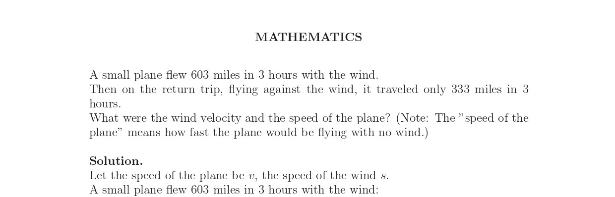 Question: A small plane flew 603 miles in 3 hours with the wind. Th...