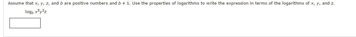 Assume that X, y, z, and b are positive numbers and b # 1. Use the ...