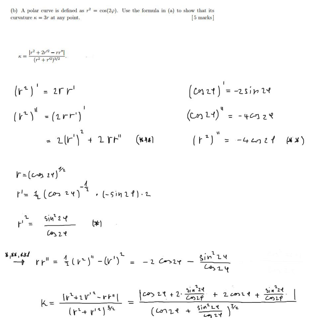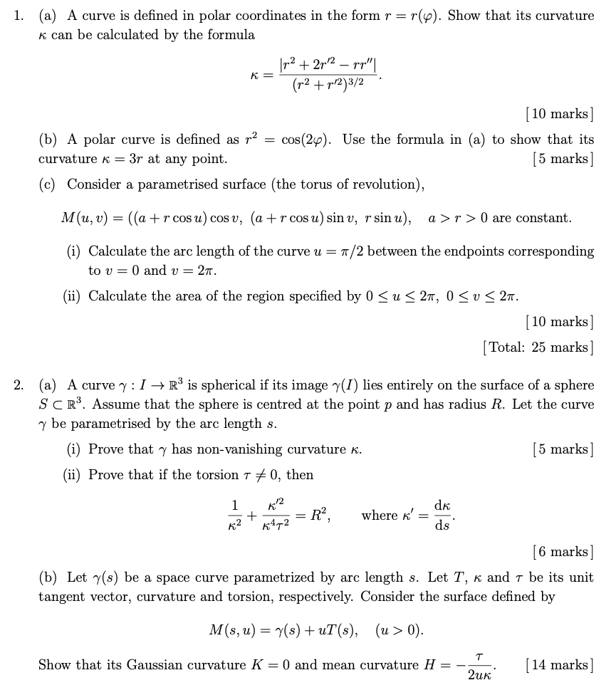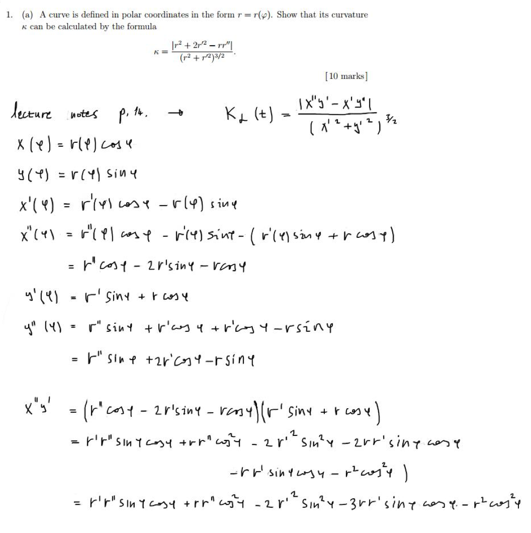 1. (a) A curve is defined in polar coordinates in the form T = r(p)...