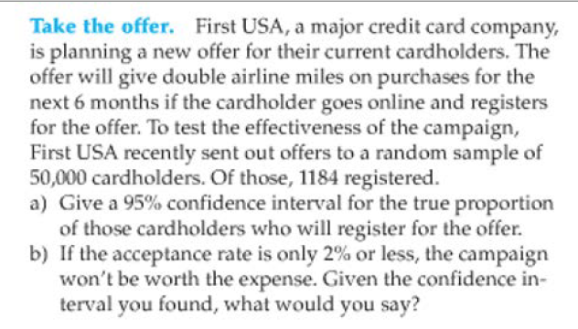 Take the offer. First USA, a major credit card company, is plannin...