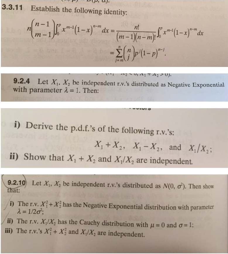 3.3.11 Establish the following identity: n-1 dx = dx 9.2.4 Let X1...
