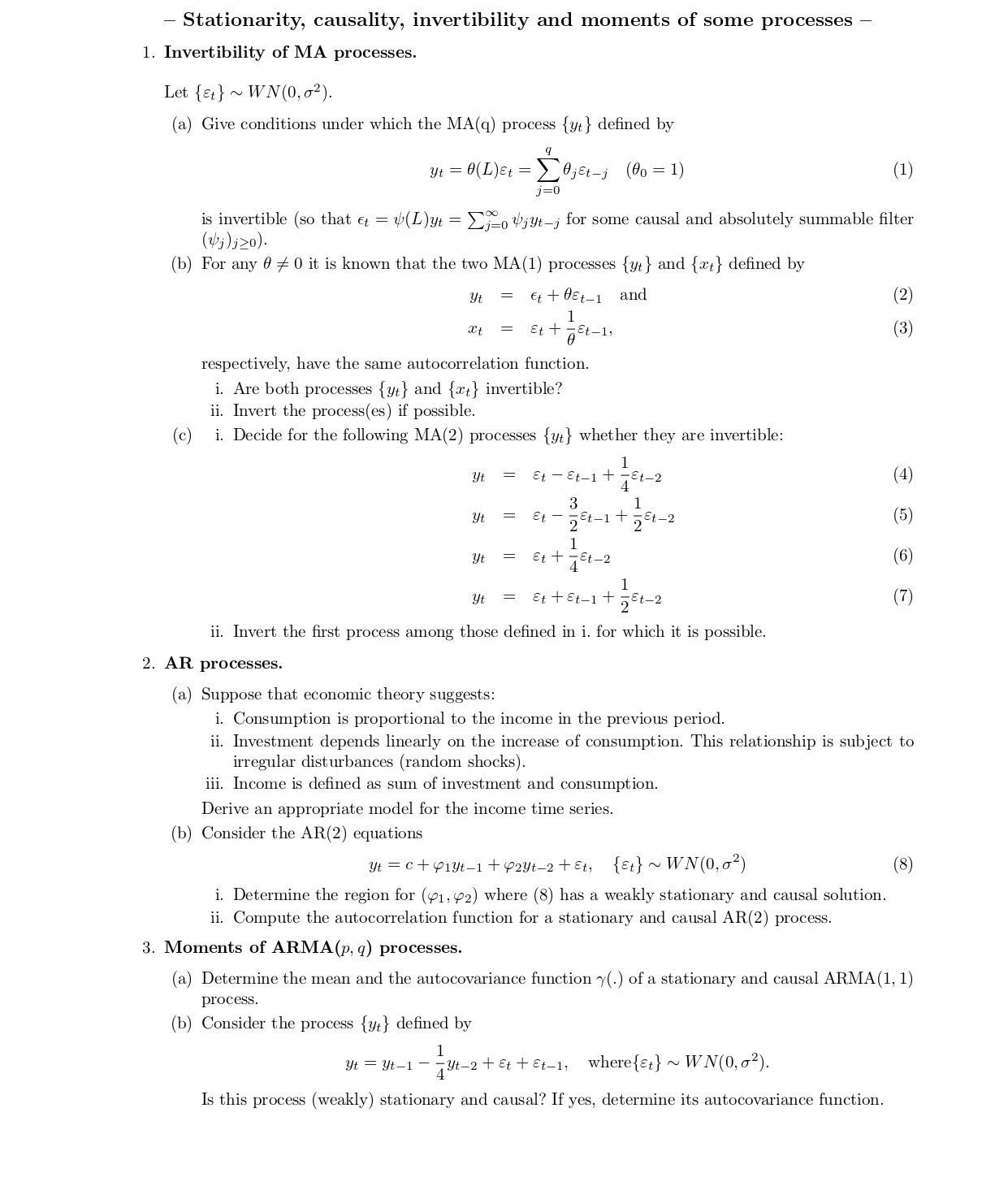 . Stationarity, causality, invertibility and moments of some proces...