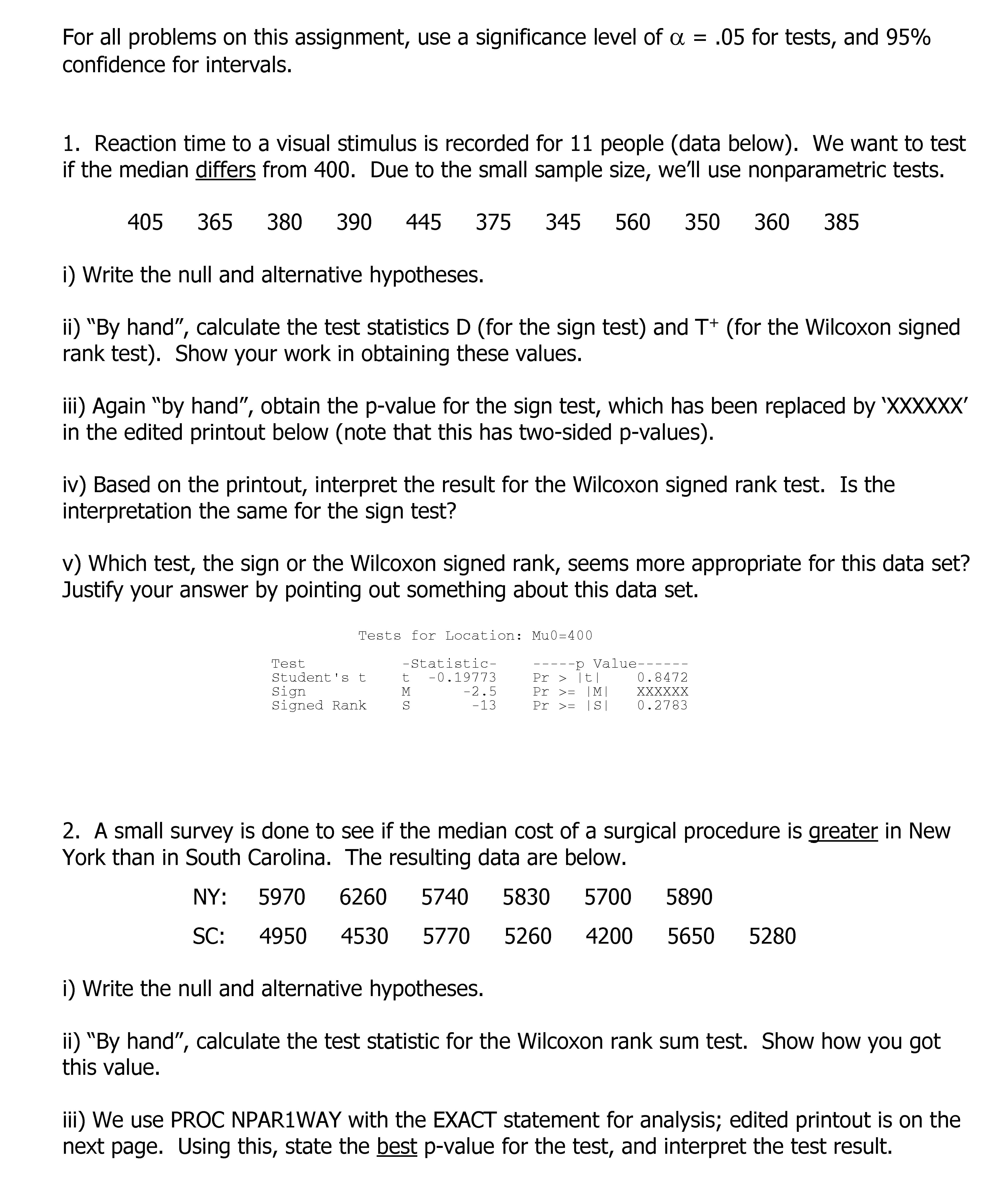 For all problems on this assignment, use a significance level of α...