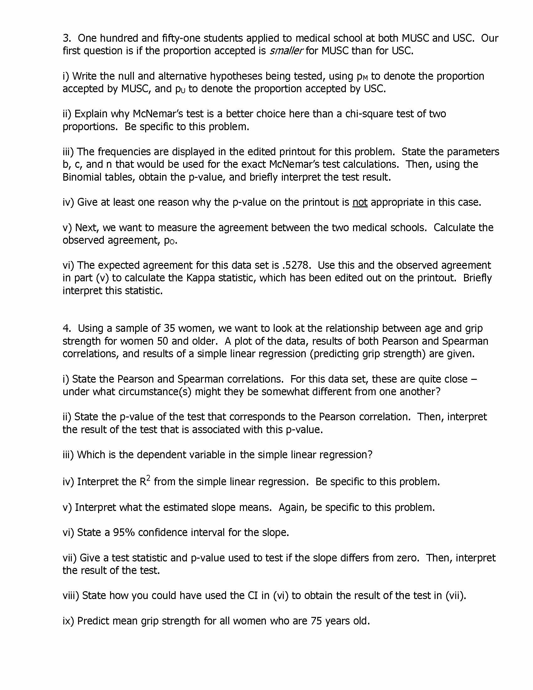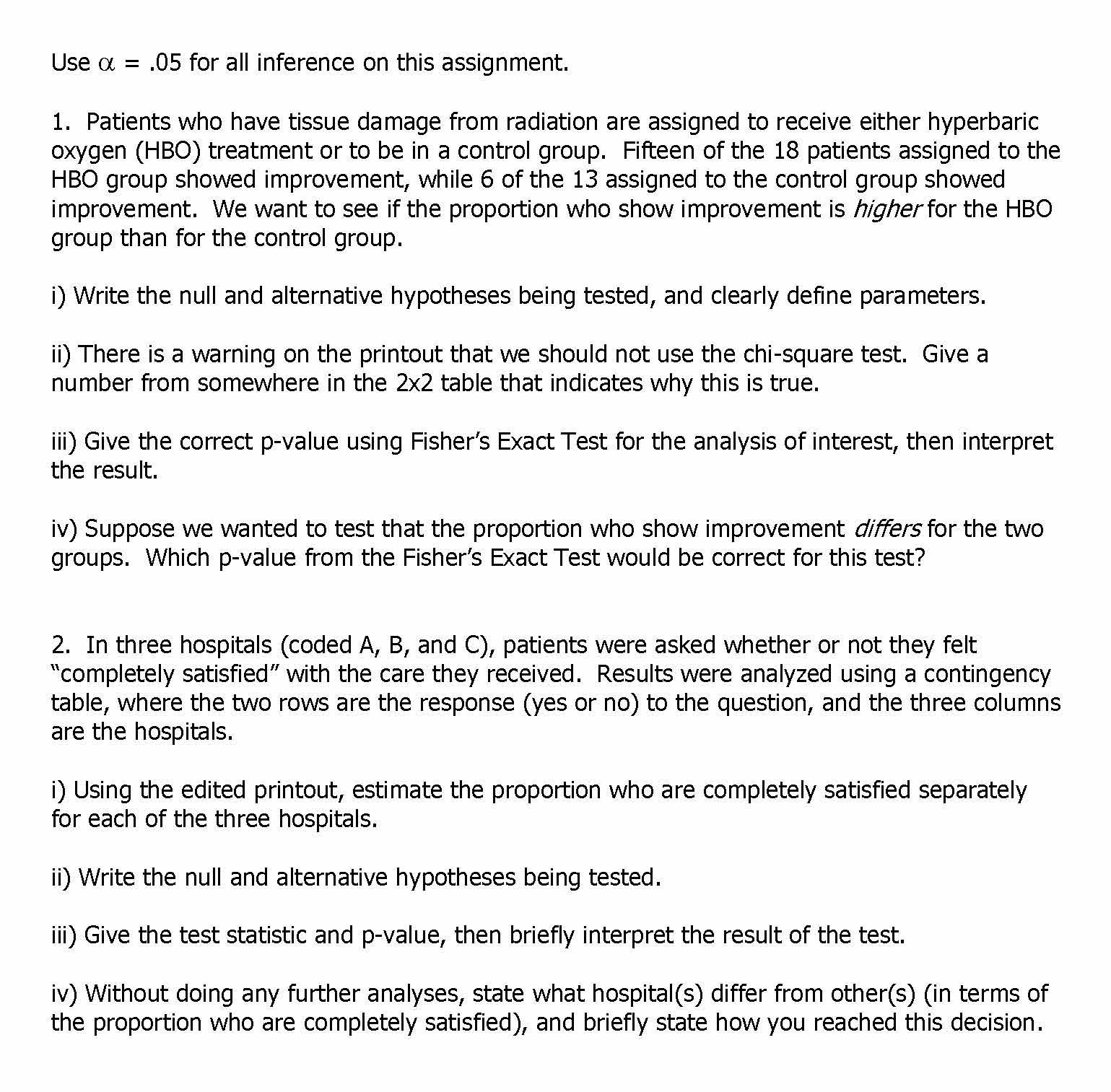 Use α = .05 for all inference on this assignment. 1. Patients who...