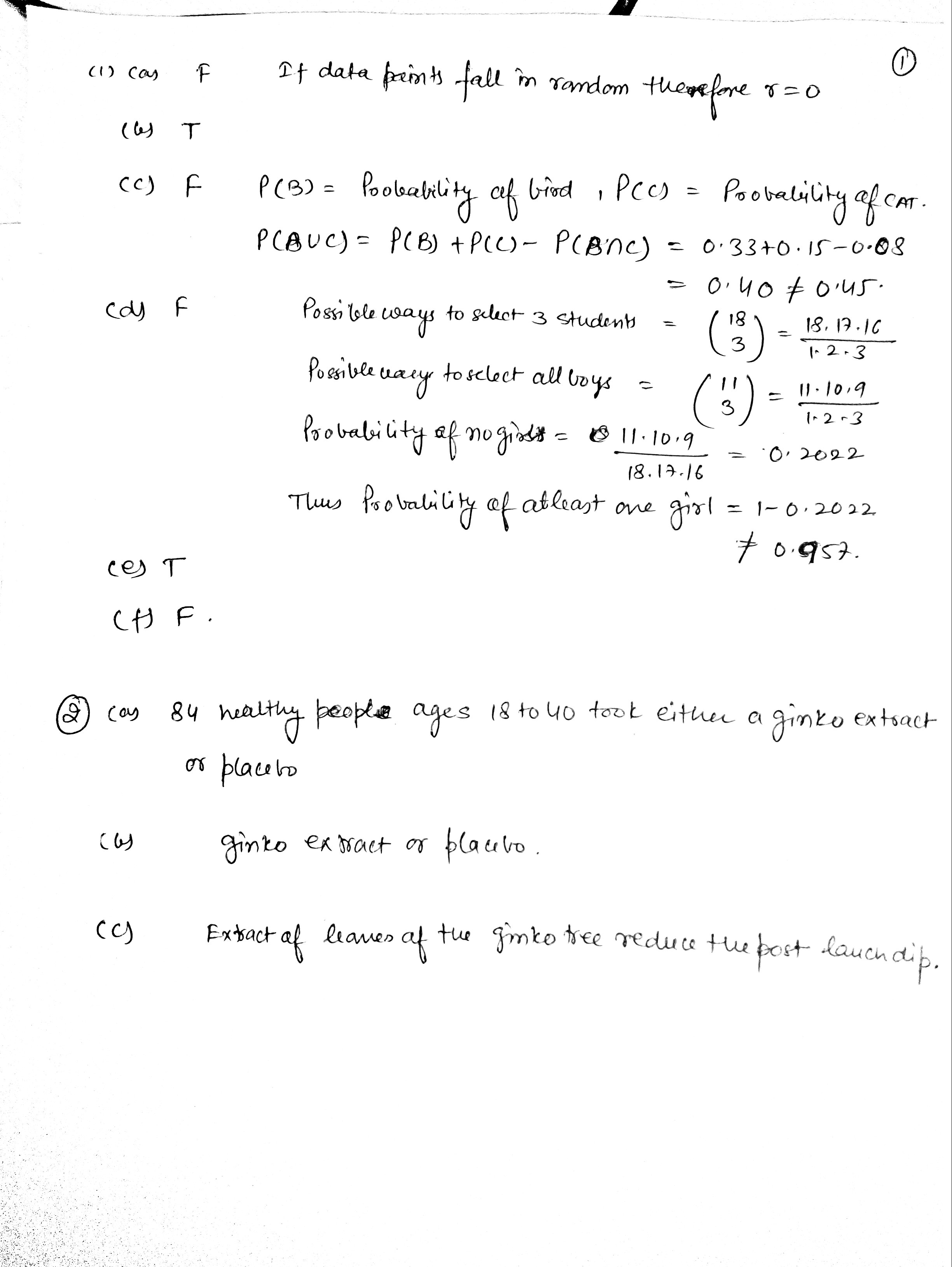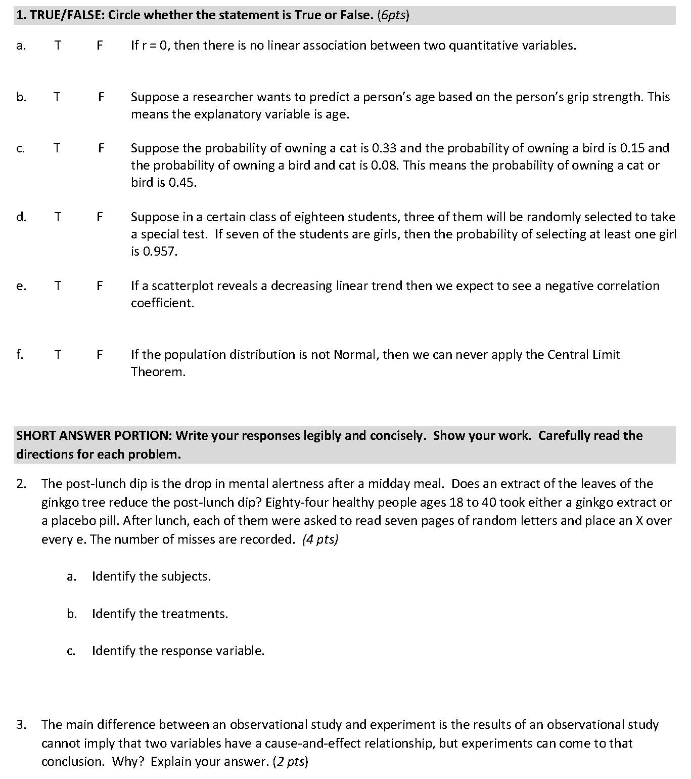 1. TRUE/FALSE: Circle whether the statement is True or False. (6pts...