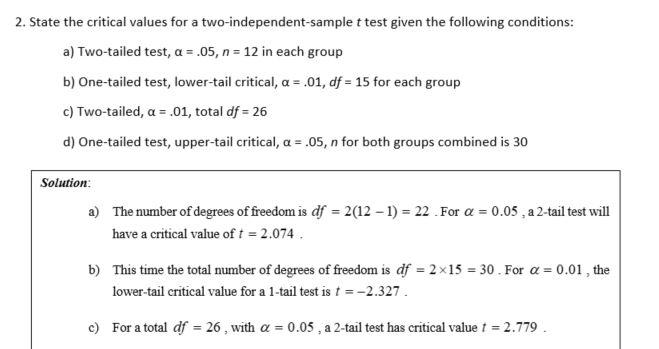 1. State the total degrees of freedom for the following t tests: ...