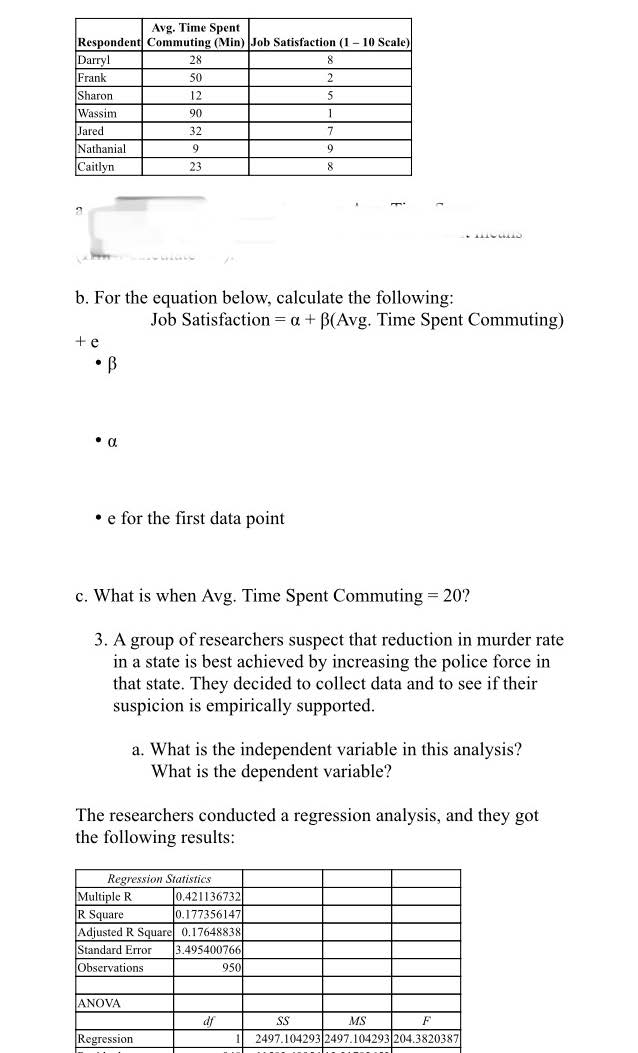 Avg. Time Spent Respondent Commuting (Min) Job Satisfaction (1 1...