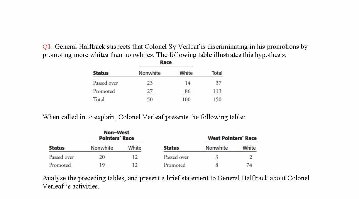 Q1 General Halftrack suspects that Colonel Sy Verleaf is discrimina...