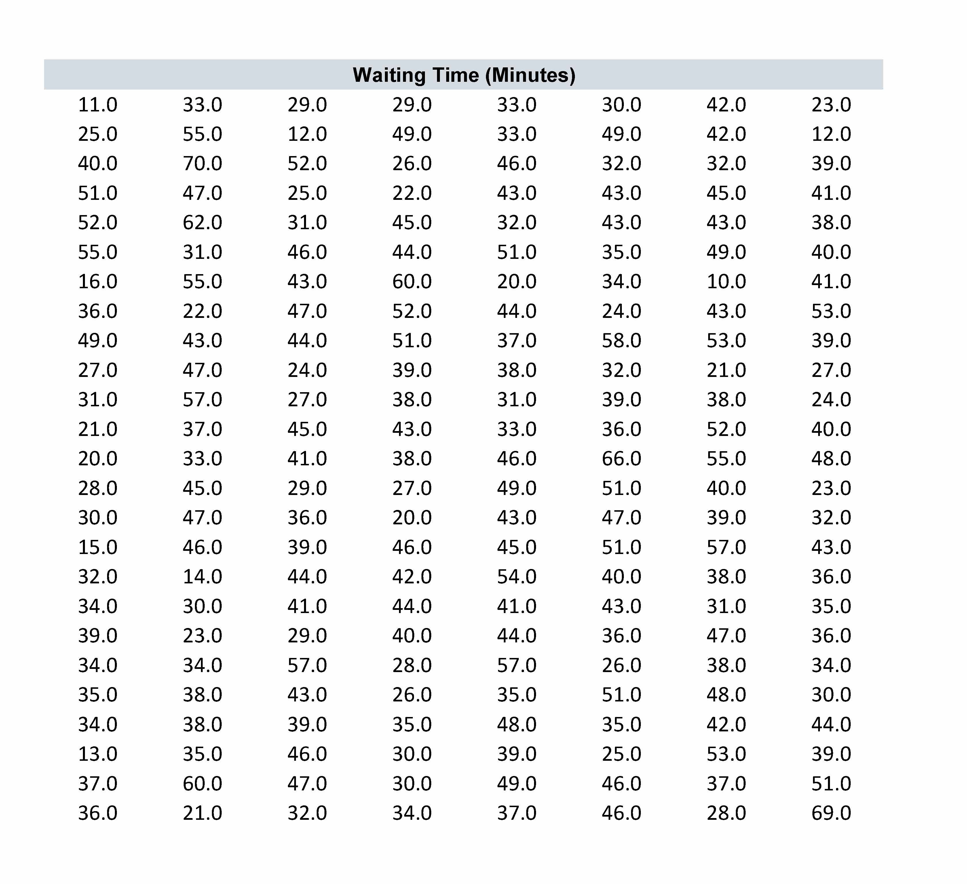 Question One: Compute Frequency distribution for wait times 1. Min...