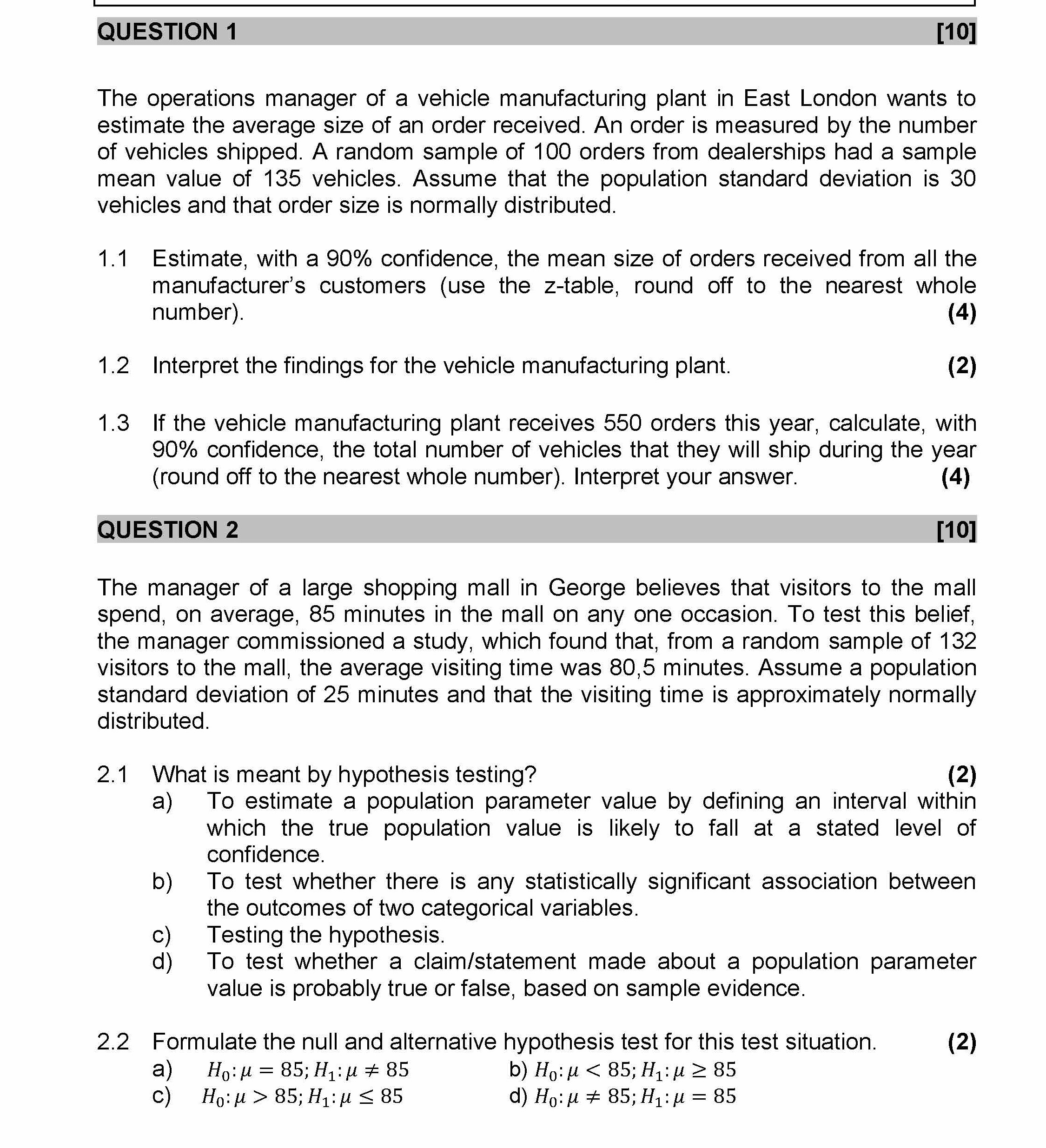 QUESTION 1 [10] The operations manager of a vehicle manufacturing...