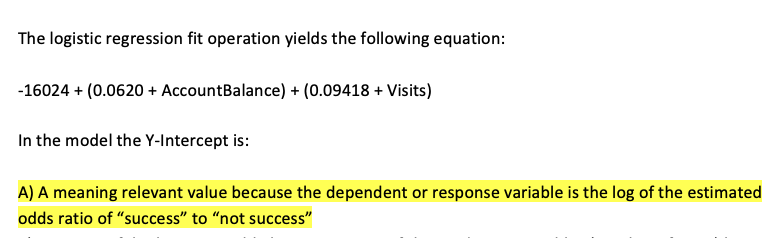 The logistic regression fit operation yields the following equation...