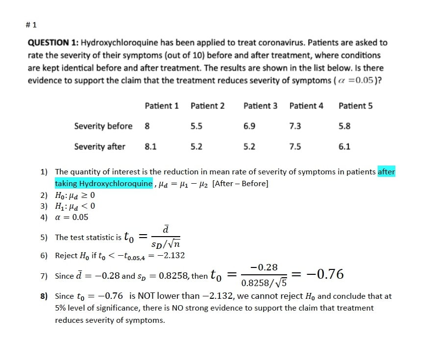 QUESTION 1:Hydroxychloroquine has been applied to treat coronavirus...