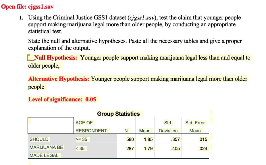 Open file: cjgss1.sav 1. Using the Criminal Justice GSS1 dataset...