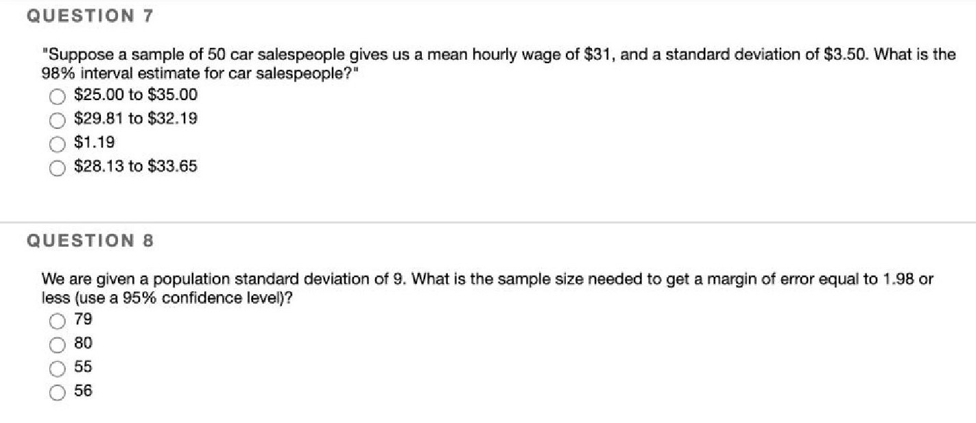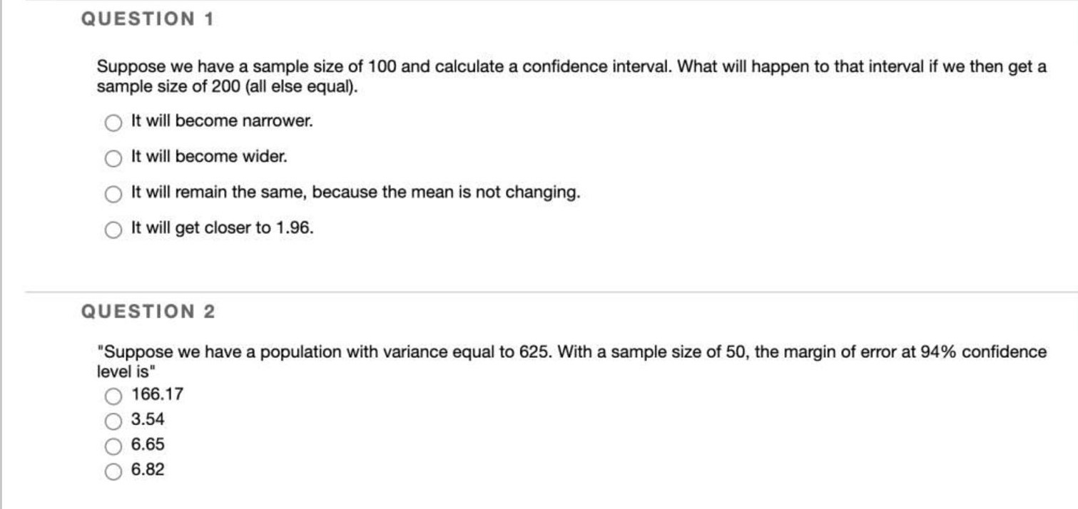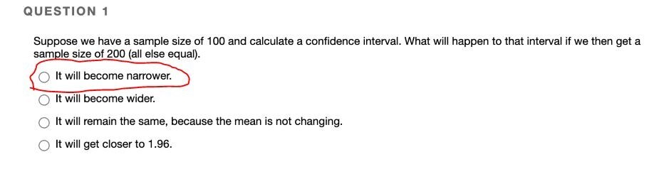 QUESTION 1 Suppose we have a sample size of 100 and calculate a co...