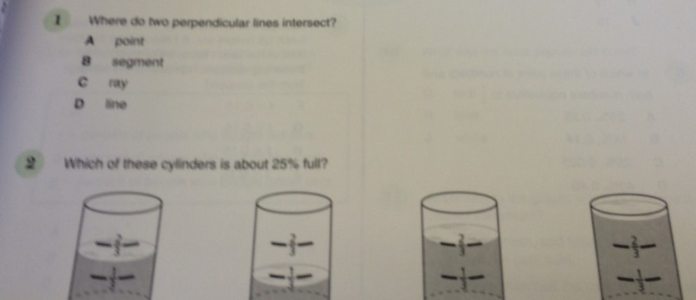 1 Where do two perpendicular lines intersect? A point a segment...