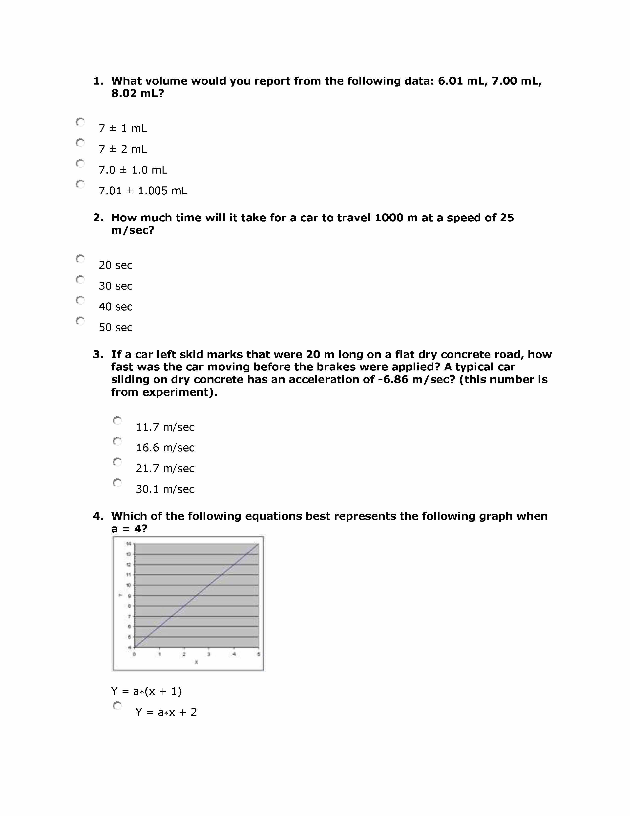 1. What volume would you report from the following data: 6.01 mL, 7...