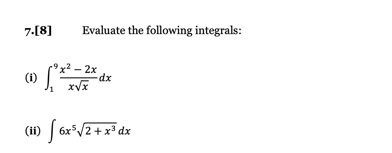 7.[8] Evaluate the following integrals: (i) pro- 1 (ii) 6x5/2+x...